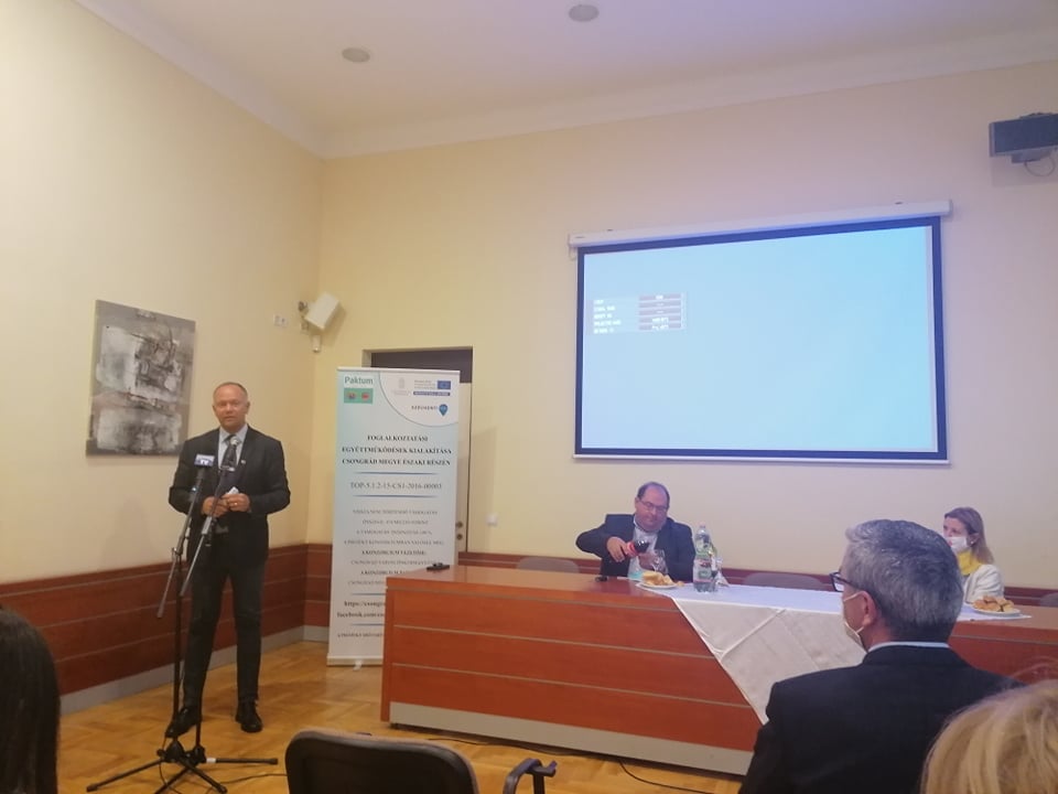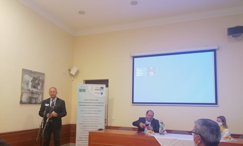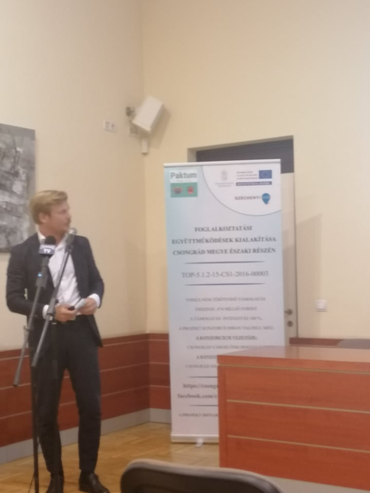 Foglalkoztatási együttműködések kialakítása Csongrád megye északi részén (TOP-5.1.2-15-CS1-2016-00003) projekt keretében találkoztak a szakértők és résztvevők Csongrádon. A rendezvényen részt vett Bedő Tamás polgármester (Csongrád), Szabó Zoltán Ferenc polgármester (Szentes), dr. Ruszinkó Ádám a Magyar Egészségturizmus Marketing Egyesület elnöke, Újszászi Erika projekt-aszisztens.
