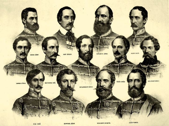 A tizenhárom aradi vértanú arcképe Barabás Miklós litográfiáján: