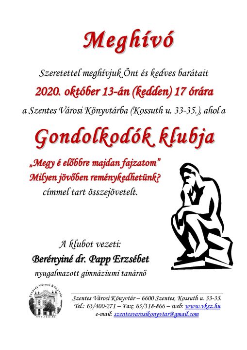 Kezdőlap Könyvtár Holnap gondolkodók klubja a könyvtárban….