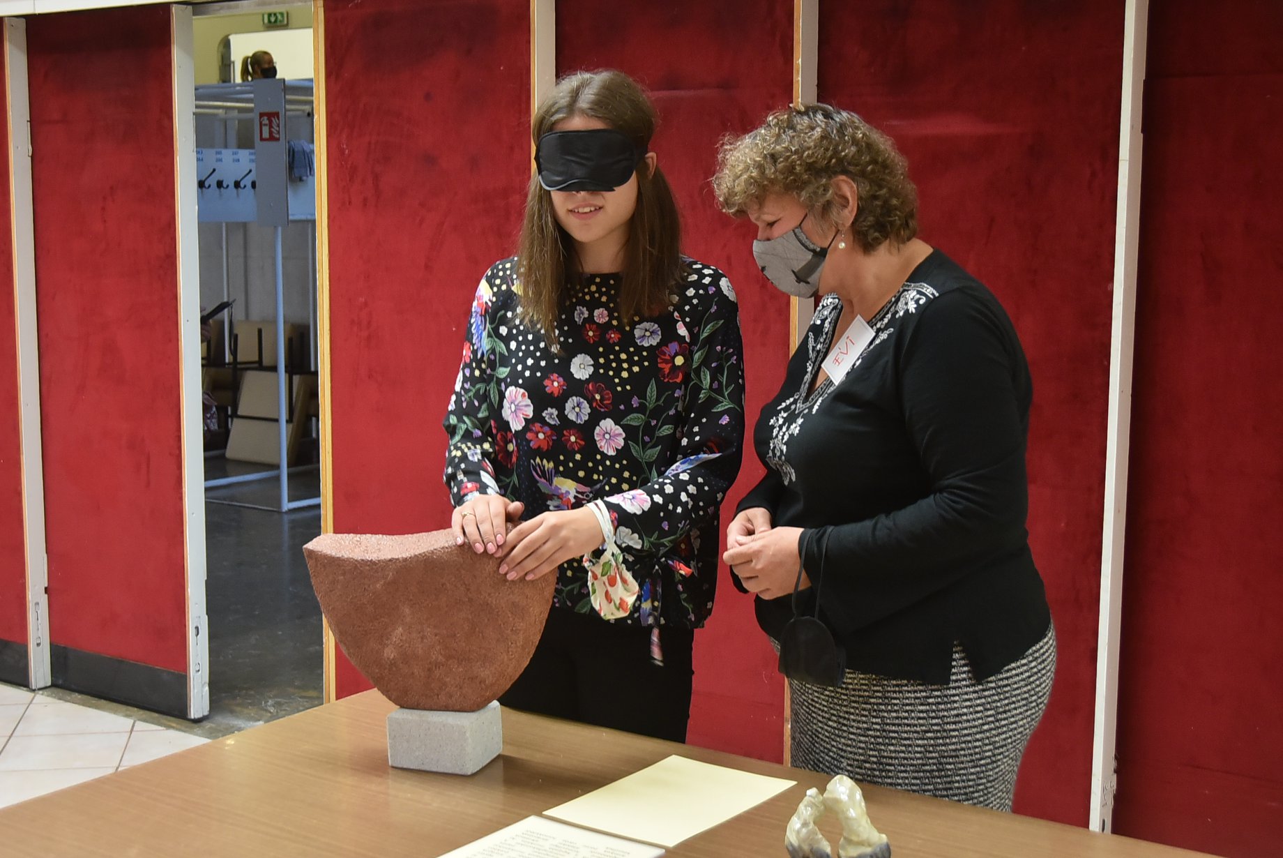 Móga Sebők Erzsébet, a Kézzelfogható Alapítvány elnöke megnyitójában elmondta, hogy ezen a vándorkiállításon kortárs képző-és iparművészek mellett különböző fogyatékossággal élők alkotásai is „tapinthatók”. A látássérültek vagy a más fogyatékossággal élők nem csodabogarak, együtt vagyunk jelen a világban. A kiállításon szereplő tárgyak nem csak szépek, finom kidolgozottságúak, hanem tapintással egy más világba visznek minket.