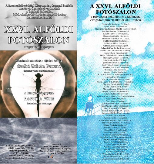 A Szentesi Művelődési Központ és a Szentesi Fotókör meghívja Önt és kedves barátait a Tokácsli Galériába, 2020. október 23-án (pénteken) 15 órakor bemutatásra kerülő XXVI. ALFÖLDI FOTÓSZALON (XL. Dél-Alföldi Fotószalon) megnyitó ünnepségére.