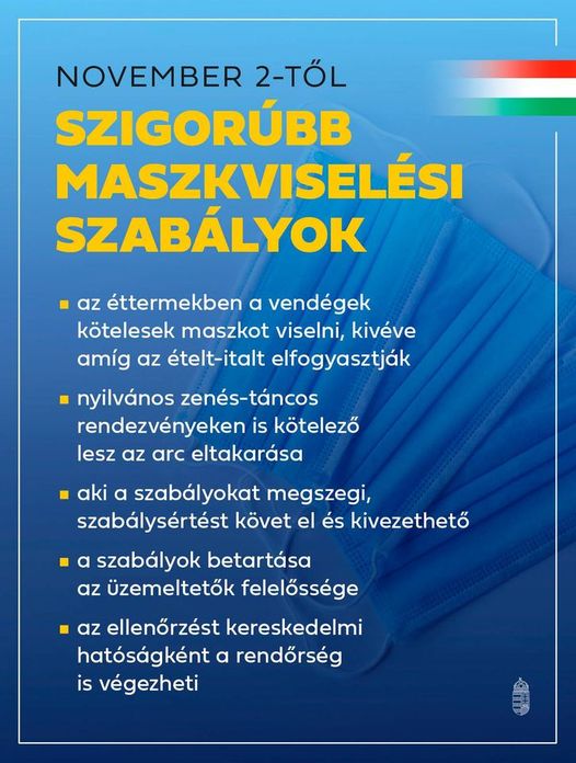 Magyarország kormánya november 2-től szigorúbb maszkviselési szabályokat vezet b…