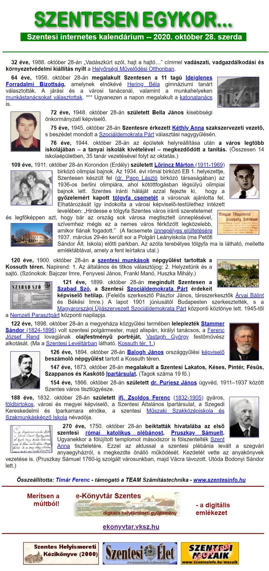 Szentesi internetes kalendárium – évfordulók napról napra