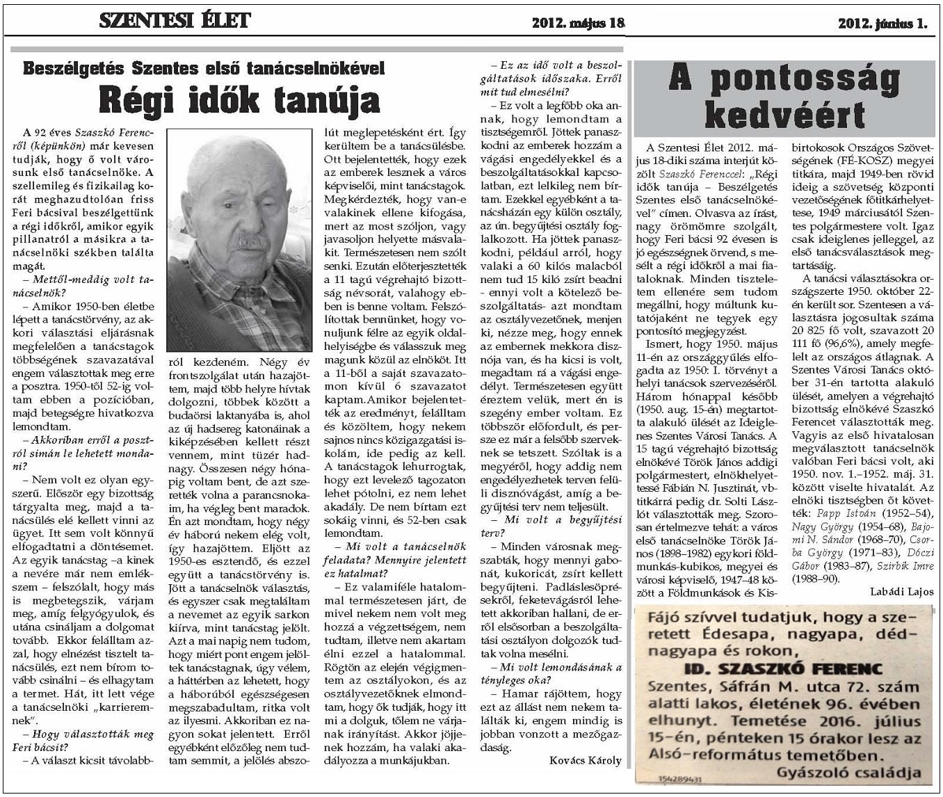 70 éve, 1950. október 31-én megtartotta alakuló ülését a Szentes Városi Tanács. A végrehajtó bizottság elnökévé Szaszkó Ferencet választották. Hivatalát 1952-ig viselte.