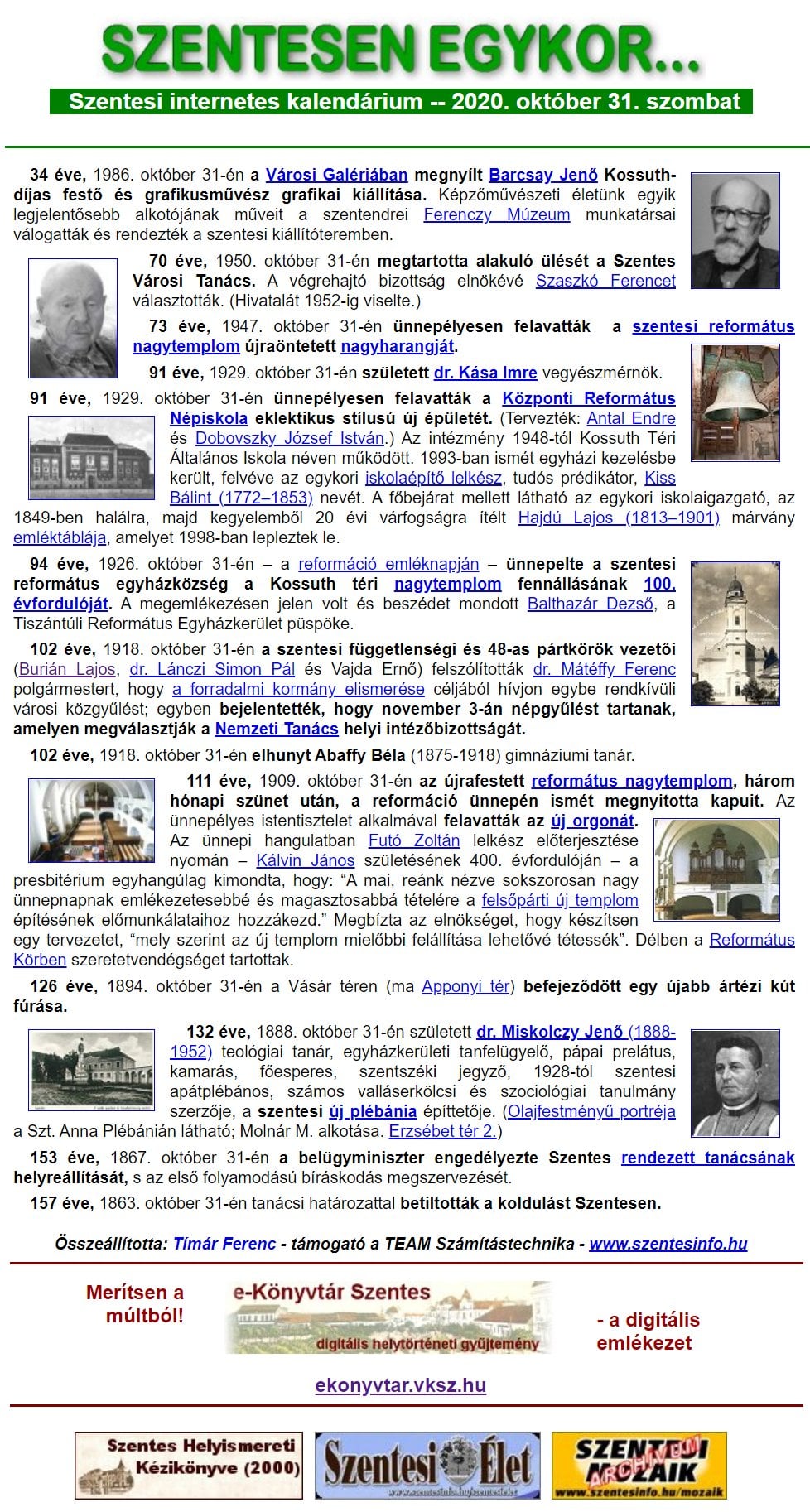 A nap és a hónap más évfordulói Labádi Lajos (1953-2019) munkái nyomán – http://www.szentesinfo.hu/mozaik/2020/calendar/evfordulonaptar-10.htm#31