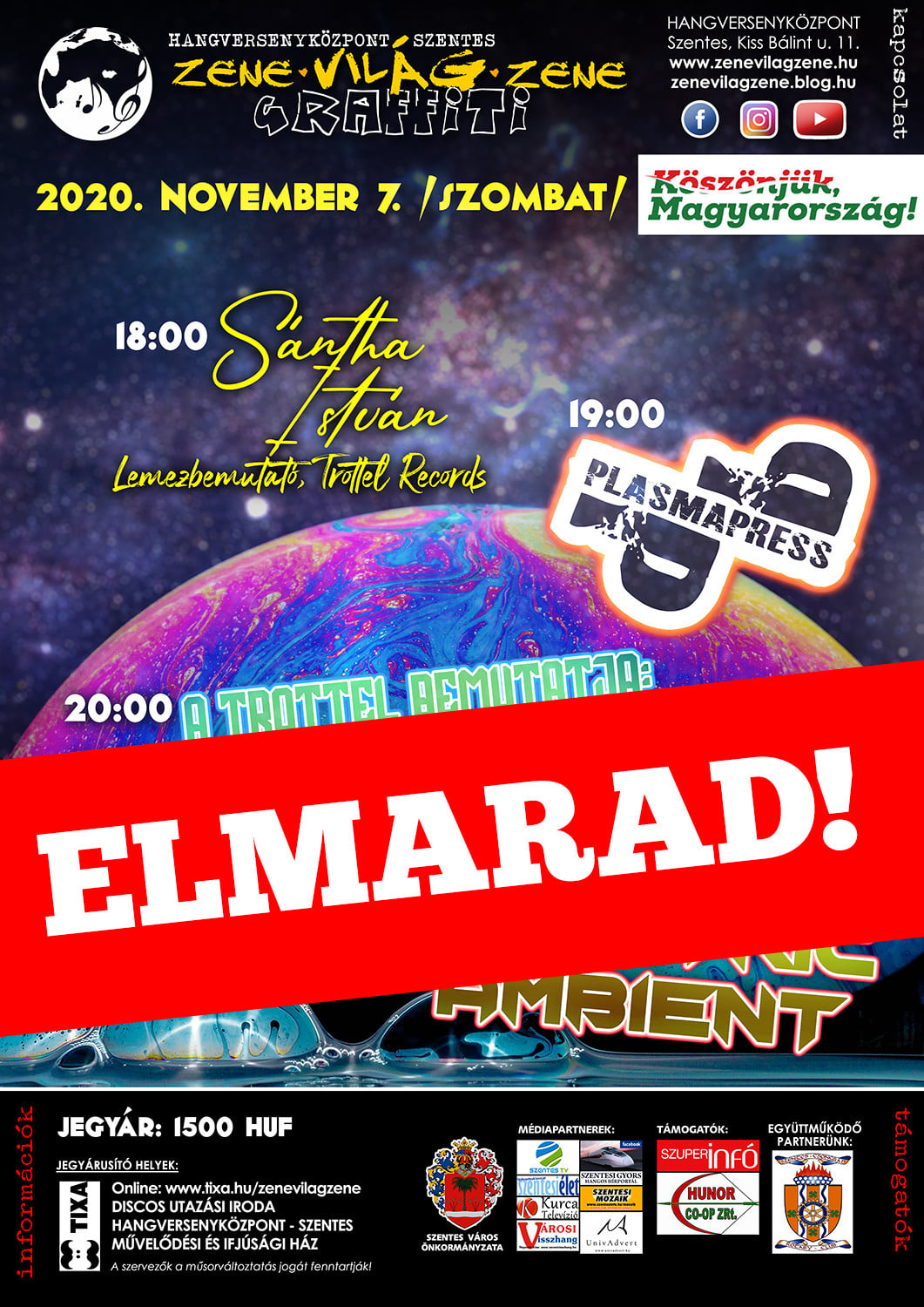 Tájékoztatjuk tisztelt közönségünket, hogy Magyarország Kormánya által életbe léptetett rendkívüli jogrend miatt a november 7-re tervezett Zene-Világ-Zene Graffiti rendezvényünk elmarad.
