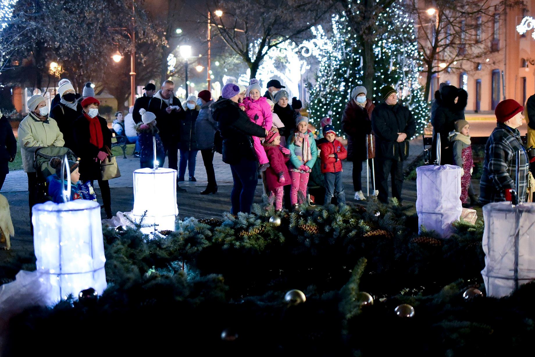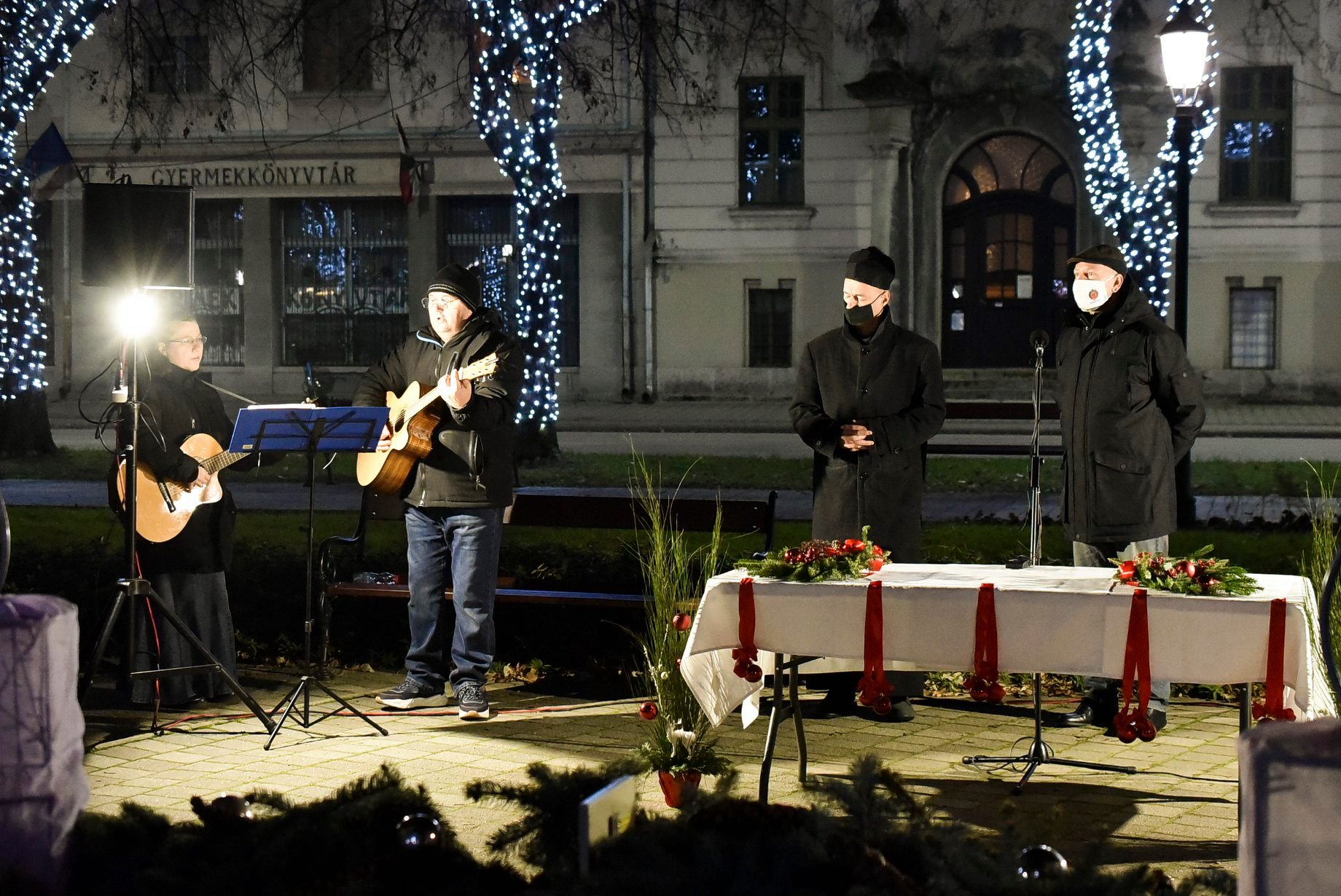 Dr. Gruber László azt a kérdést tette fel, hogy vajon ma, a járványhelyzet miatt hányan tudnak ezzel az ünneppel mit kezdeni, hányaknak lesz inkább szomorú, mintsem örömteli a karácsony. Advent harmadik vasárnapja, az öröm vasárnapja pontosan arra hívja fel a figyelmet, hogy készítsük elő úgy a lelkünket, hogy valóban örülni tudjunk, hiszen egy gyermek születésére emlékezünk. Tudjunk hálásak lenni mindenért, ami körülvesz minket, a természetért, a létezésért, fogalmazott a plébános. Végül Reményik Sándor Csendes csodák című verséből idézett. Egy záró ének után Szabó Zoltán Ferenccel együtt meggyújtották a város adventi koszorúján a harmadik gyertyát.