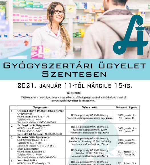 Kezdőlap Hírek Gyógyszertári ügyelet az év elején (január 11 – március 15)…
