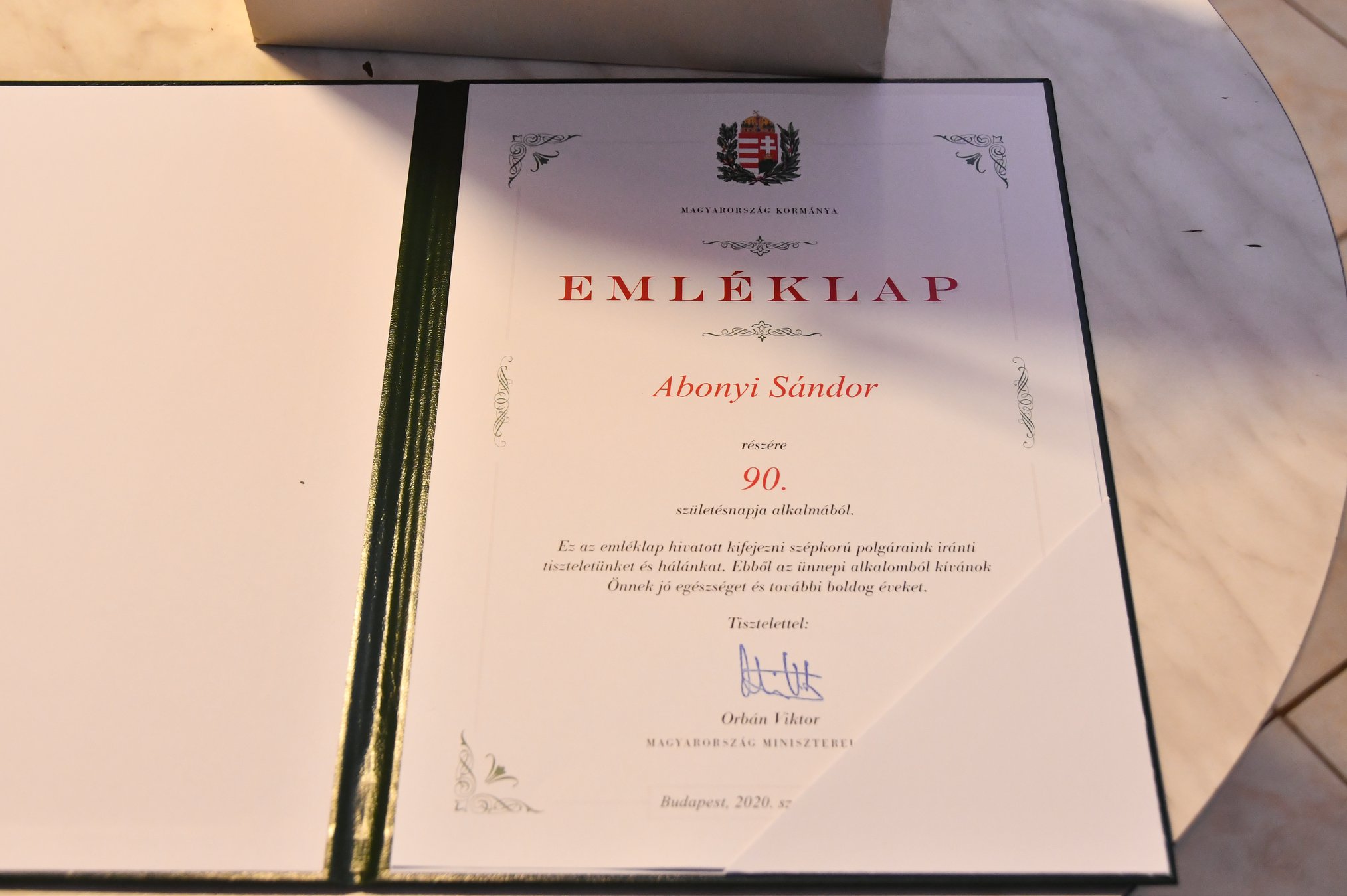 Abonyi Sándort ez alkalomból Szabó Zoltán Ferenc polgármester köszöntötte és adta át Orbán Viktor miniszterelnök által aláírt díszoklevelet.