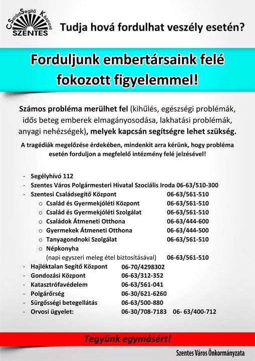 – Szentes Város Polgármesteri Hivatal Szociális Iroda 06-63/510-300