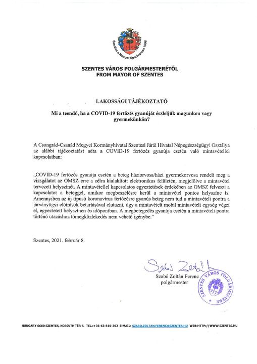 Kezdőlap Szentesi Élet Mi a teendő, ha COVID-19 fertőzés gyanúját észleljük magunkon vagy gyermekünkön?…