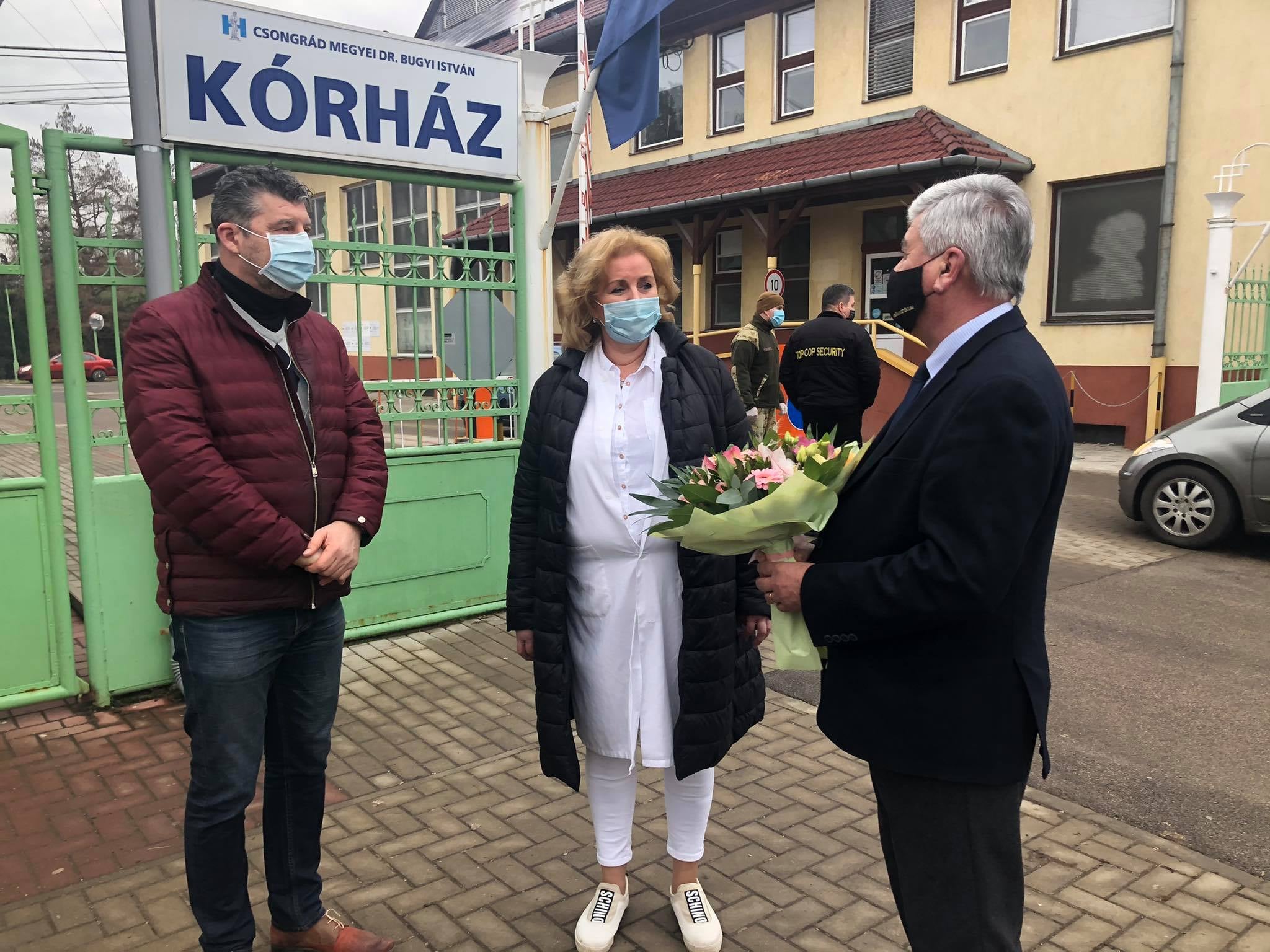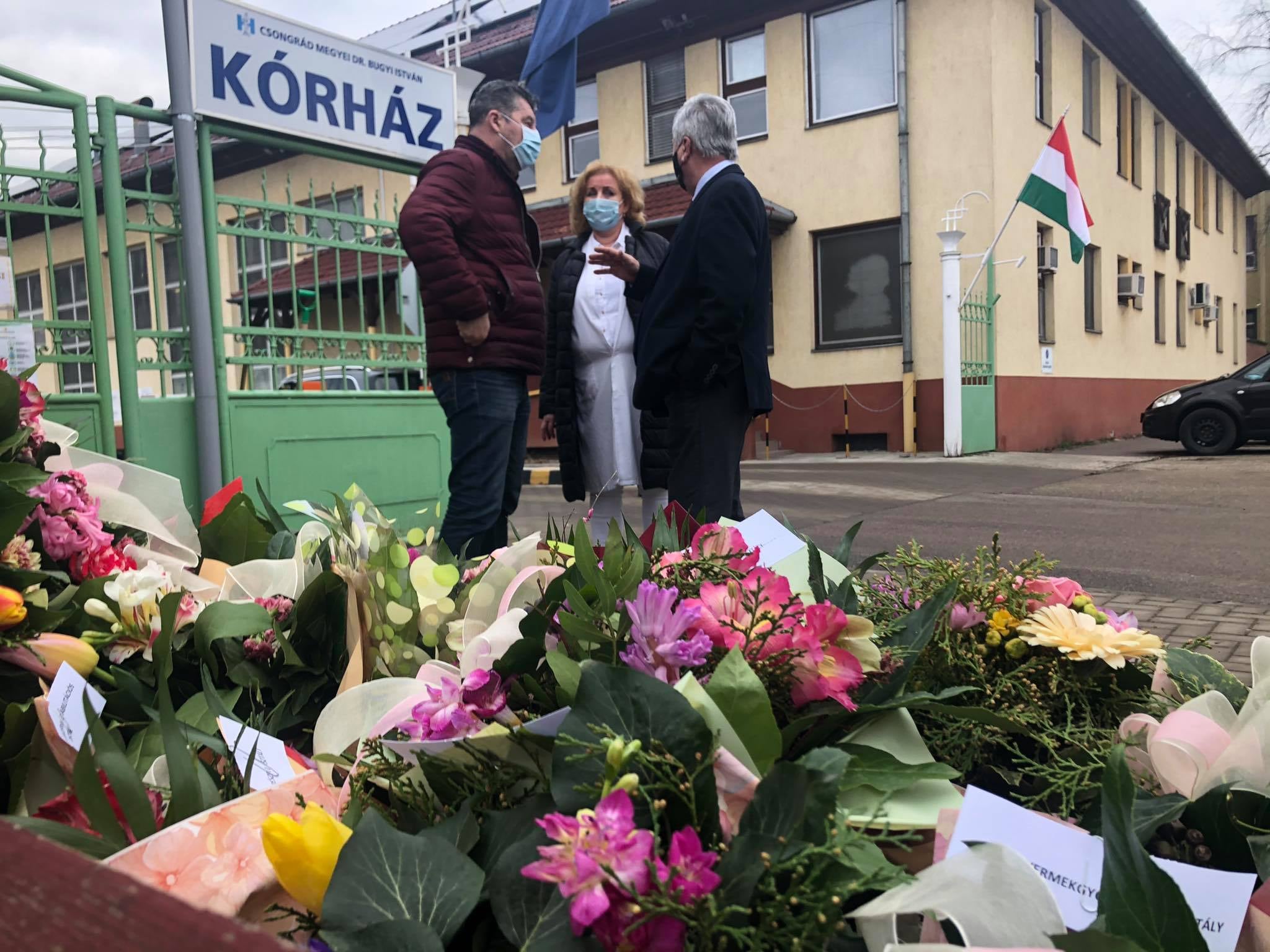 A térség országgyűlési képviselője, Farkas Sándor miniszterhelyettes már hagyományosan, virágcsokrokkal köszöntötte az ápolókat a Csongrád-Csanád Megyei Dr. Bugyi István Kórházban, február 19-én. A képviselőt dr. Kalmár Mihály főigazgató és dr. Abebené Bagi Márta ápolási igazgató fogadta.