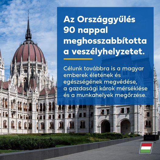 Az Országgyűlés 90 nappal meghosszabbította a veszélyhelyzetet. – Célunk továbbra is a magyar emberek életének és egészségének megvédése, a gazdasági károk mérséklése és a munkahelyek megőrzése.