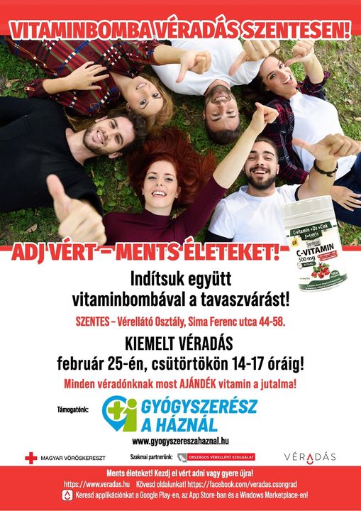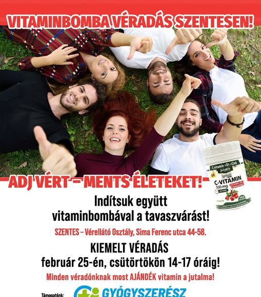 A Gyógyszerész a Háznál program segítségével a szentesi Vitaminbomba véradáson minden véradót vitamincsomaggal lepnek meg.