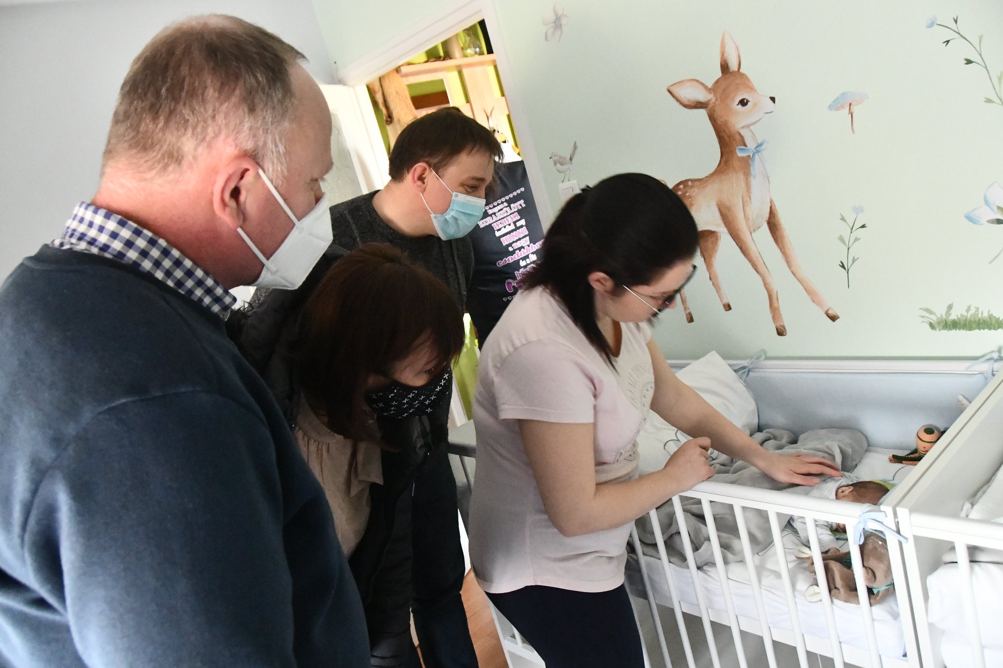 A babakocsit Szabó Zoltán Ferenc polgármester és Varga János a szentesi hármas ikrek édesapja adta át az Király Richárdnak és Királyné Kerekes Edinának Hódmezővásárhelyen 2021. február 25-én.