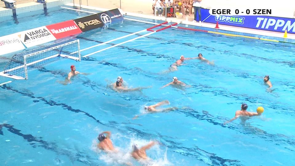 Kókai TIbor elfogadható lövése a szerdai Eger-Szentes (5:3) bajnokin.