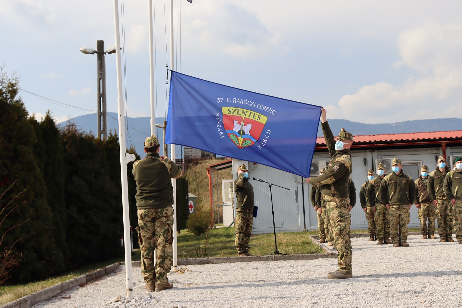 Alakulatunk lobógója került – a székesfehérvári MH 43. Nagysándor József Híradó és Vezetéstámogató Ezred zászlójának helyére – az Európai Unió és Magyarország zászlaja mellé a szarajevói Butmir táborban tartott átadás-átvételi ceremónia során március 5-én.