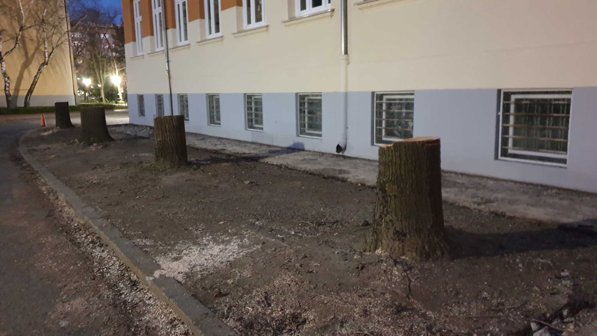 Örömmel látjuk, hogy a város különböző pontjain cserére kerülnek az elöregedett, nem odaillő fák. Ez a csere ebbe a sorba illeszkedik. Az előzőekben említettek miatt az iskola épületének északi fala mellett álló fák helyett a kevesebb fényt jobban elviselő alacsonyabb növésű fák kerülnek majd telepítésre, amelyek így kissé távolabb is kerülhetnek az épülettől. Az iskola „örökbe fogadja” az új facsemetéket, vállalva a fiatal fák gondozását, öntözését. Közbiztonság szempontjából is jobb lesz a terület kevésbé beárnyékolt volta.