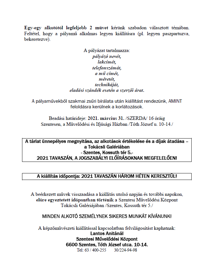 Az elkészült pályamunkákat telefonos egyeztetetést követően várjuk szeretettel (3630/224-94-98) hétköznap 8.00-16.00 óráig, melyre 2021. március 31-ig van lehetőségük.🧡💛💚💙