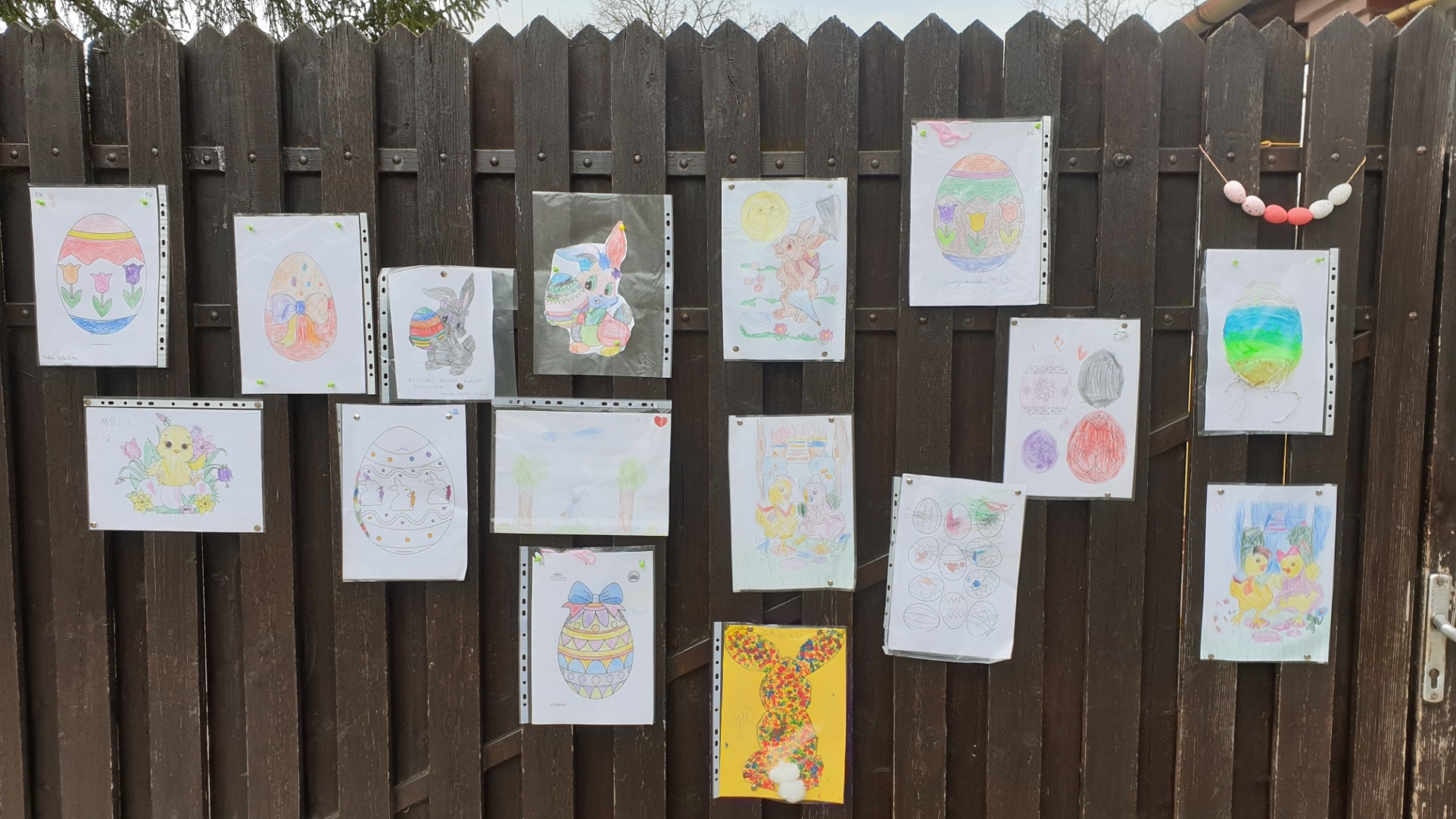 A óvodás gyermekek rajzaikat várják a kapura, hogy ha csak így, de legyen egy kis húsvéti ráhangolódás.
