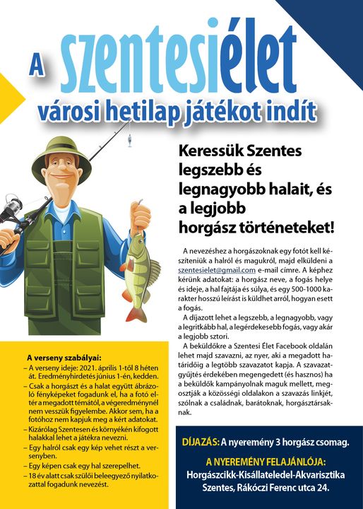 ‼️ NYEREMÉNYJÁTÉK‼️ Keressük Szentes legszebb és legnagyobb halait, valamint a legjobb horgásztörténeteket. Részletek a plakáton! Oszd meg társaiddal is!