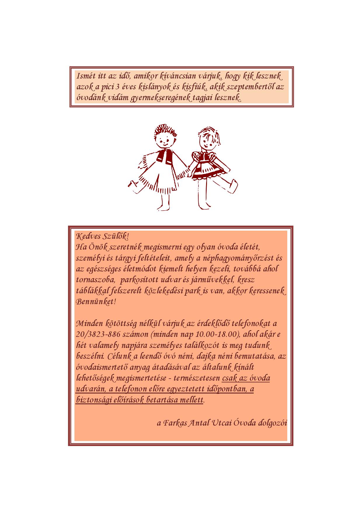 Esetlegesen felmerülő kérdéseikkel bátran forduljanak az óvoda vezetőjéhez a plakát alján olvasható telefonszámon.