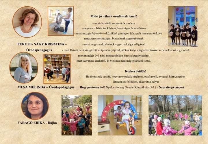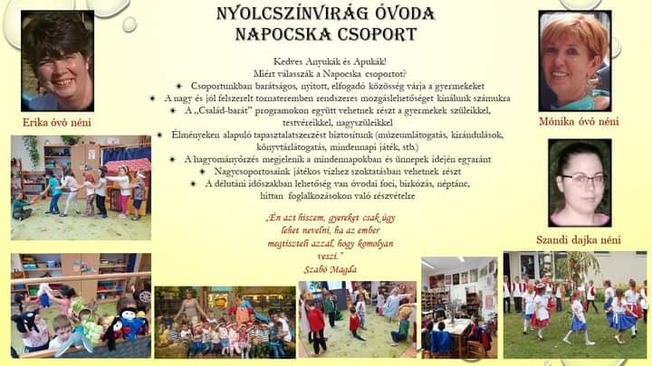 Ha fontosnak tartják, hogy gyermekük odafigyelő, türelmes, nyugodt környezetben játsszon és fejlődjön, akkor a Nyocszínvirág óvodában a helye! A kicsiket várja a Napraforgó és a Napocska csoport.