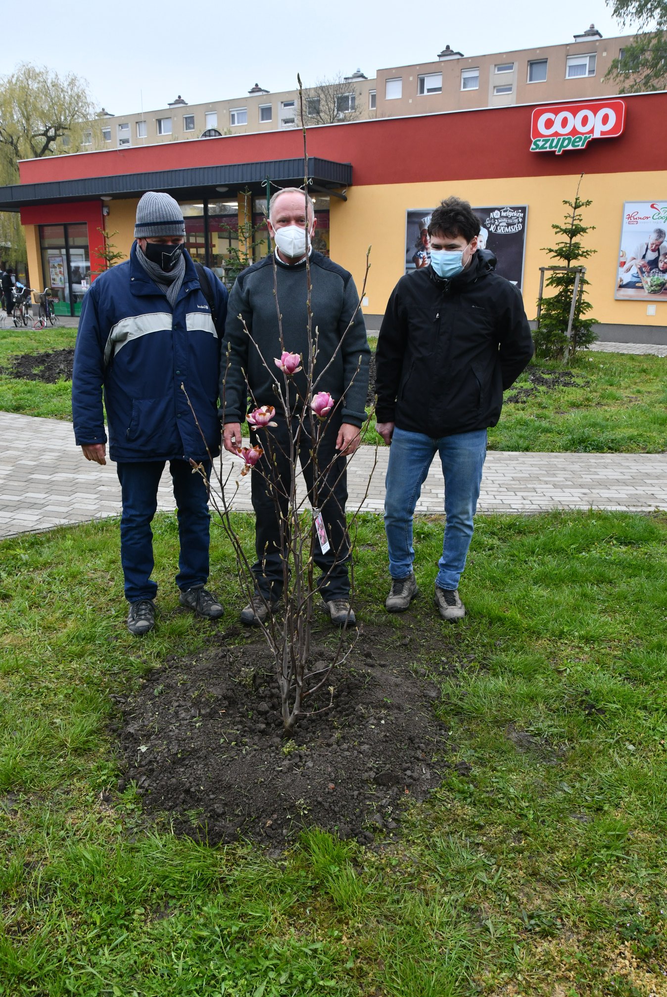 Szentes Város Önkormányzata szervezésében 21 helyszínre 25 magnólia (liliomfa) csemetét ültettek el a körzetek képviselői. A kopár tél után üdítő látvány a virágba borult fa, amely valójában cserje.