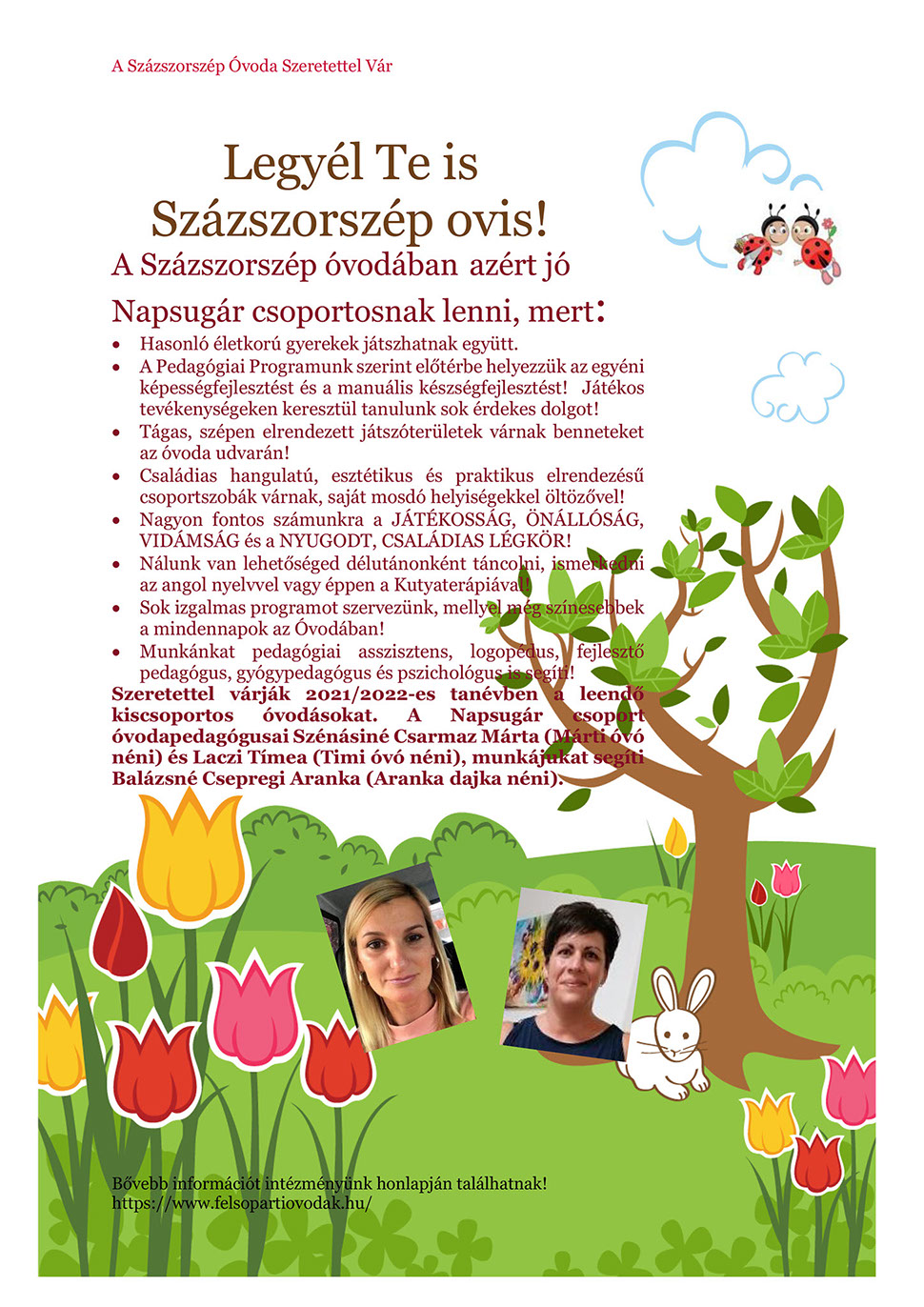 A 2021/22-es nevelési évre vonatkozó beiratkozás ONLINE felületen fog történni a www.szentes.hu/beiratkozas oldalon, amely elérhető lesz 2021. április 21-22-én.