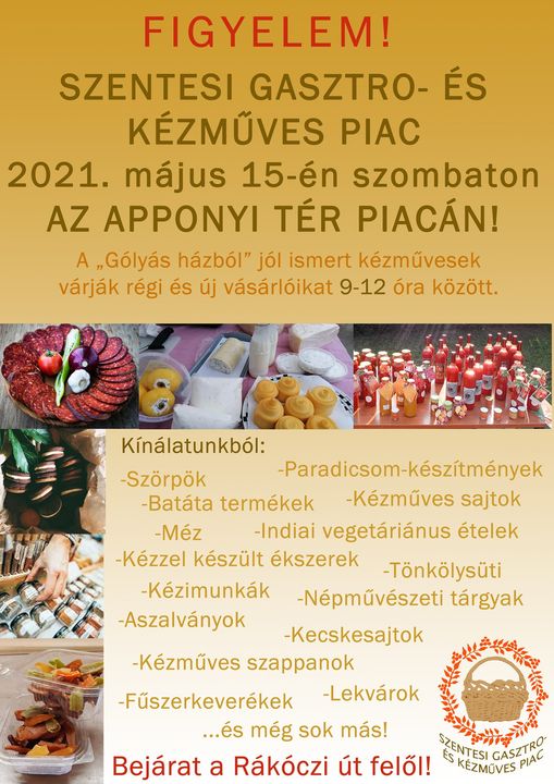 A megszokott termelőkkel és termékekkel, a szokásos időpontban – minden hónap harmadik szombatján –, de új helyen várja vásárlóit a Szentesi Gasztro- és Kézműves Piac. Megszűnik ugyanis a Garaboly a Művészetek Háza udvarán, a szentesiek azonban továbbra is igénylik a helyi ízeket, így a termelők új helyszínt kerestek, május 15-től az Apponyi téri zöldségpiacon árulják portékáikat. Az egyik kezdeményezővel és szervezővel, Kovács Sándorral, a Dorka Fűszerháza kistermelőjével beszélgettünk. A részleteket lapunk 7. oldalán olvashatják.
