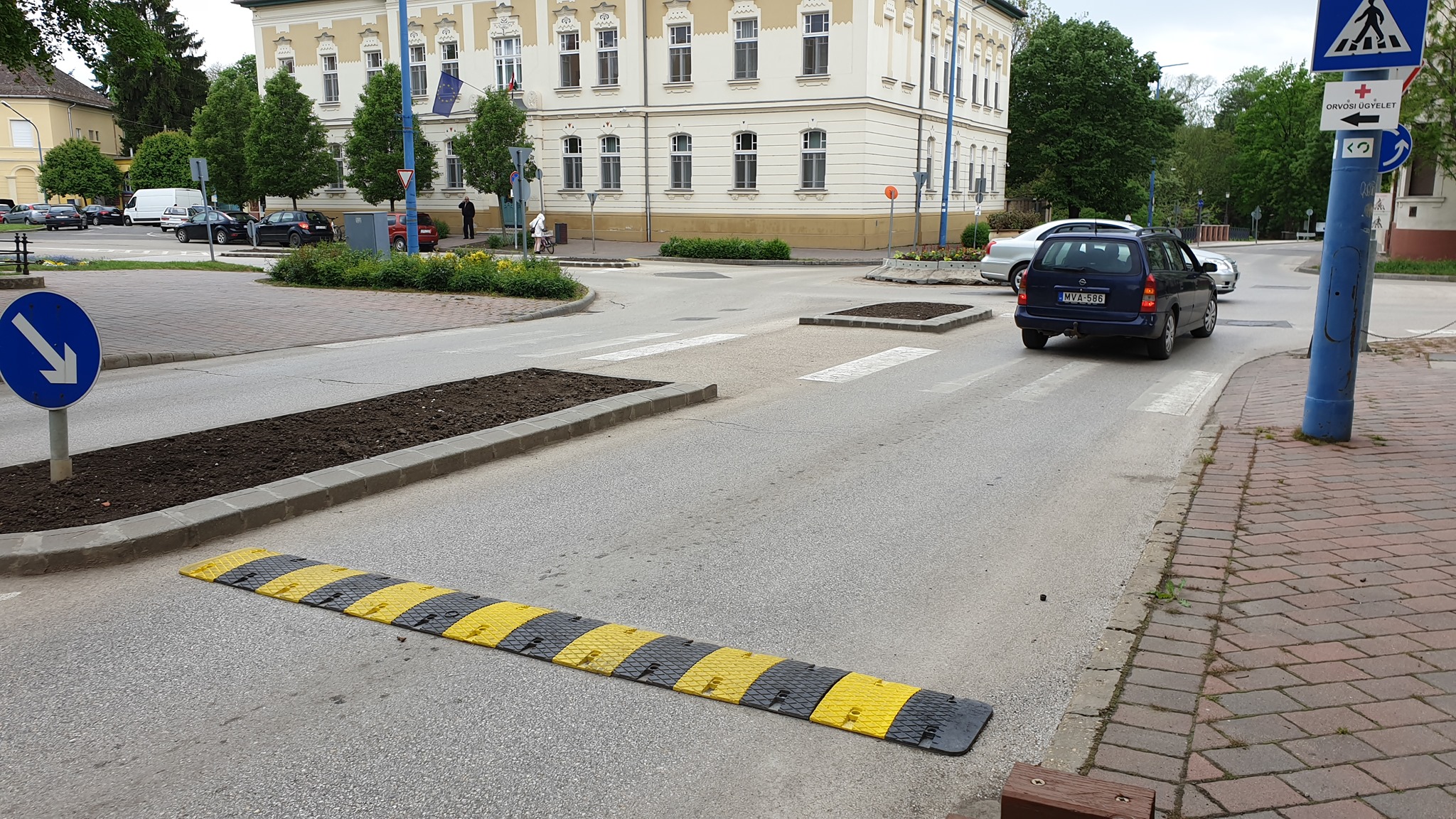 „Fekvőrendőrrel” akadályozzák meg, hogy sebességcsökkentés nélkül hajtsanak be a Kossuth utcán, a bíróságnál található körforgalomba az autósok.