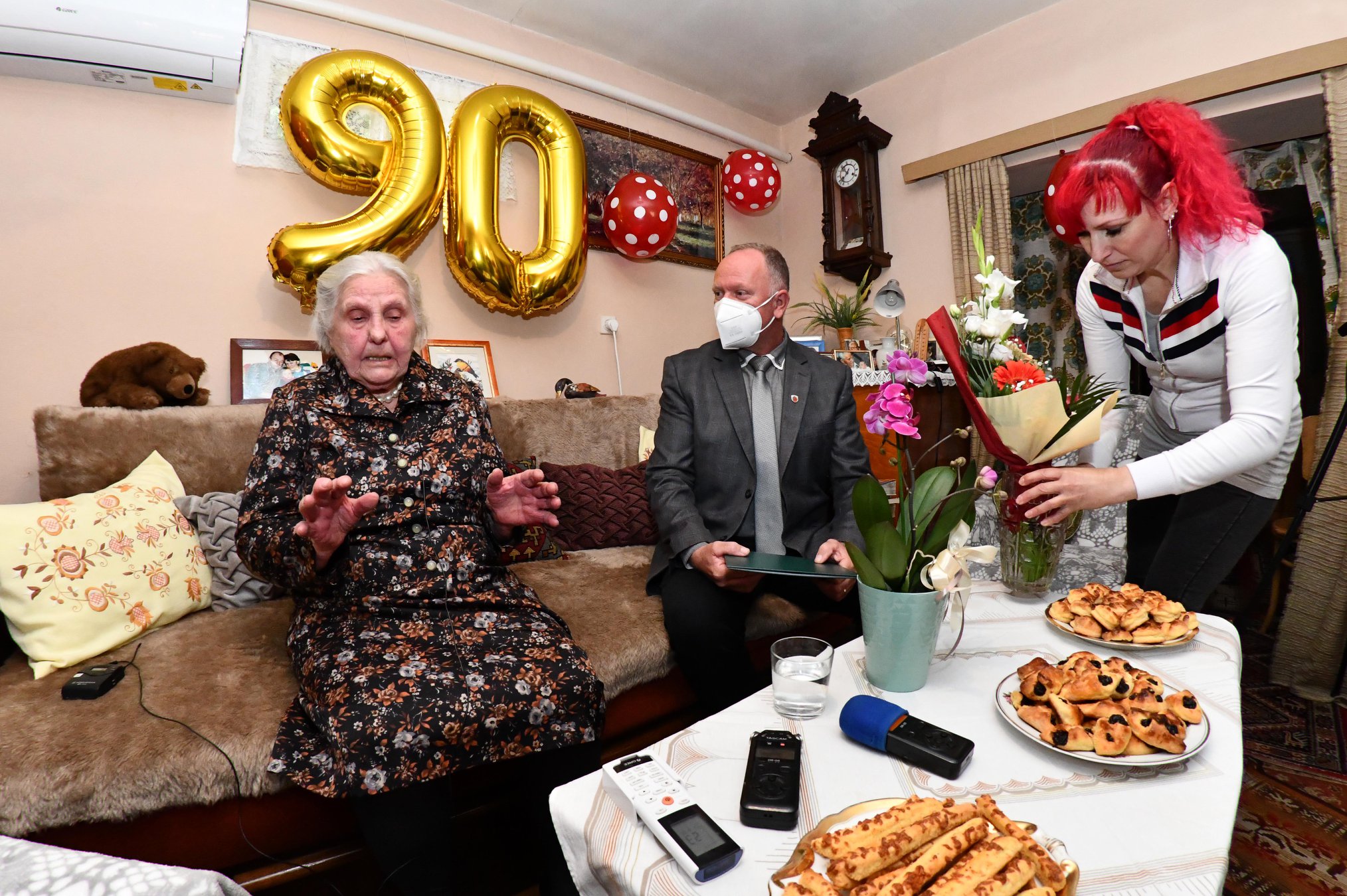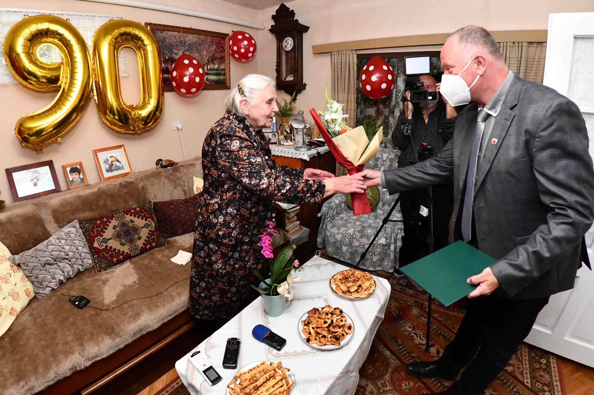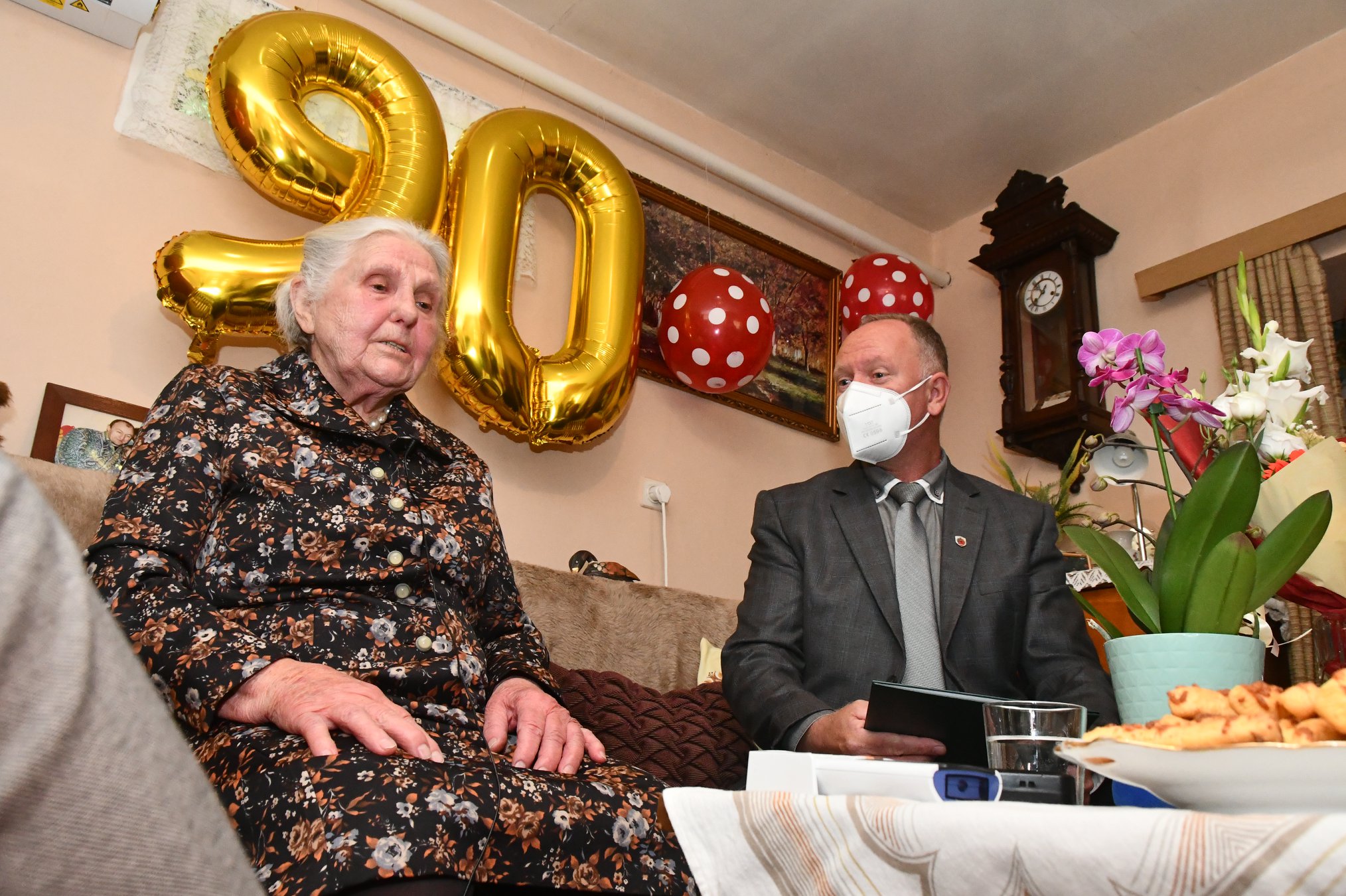 A Szilfa utcában lakó Gut Jánosné, Katika nénit köszöntötte Szabó Zoltán Ferenc polgármester 90. születésnapja alkalmából.