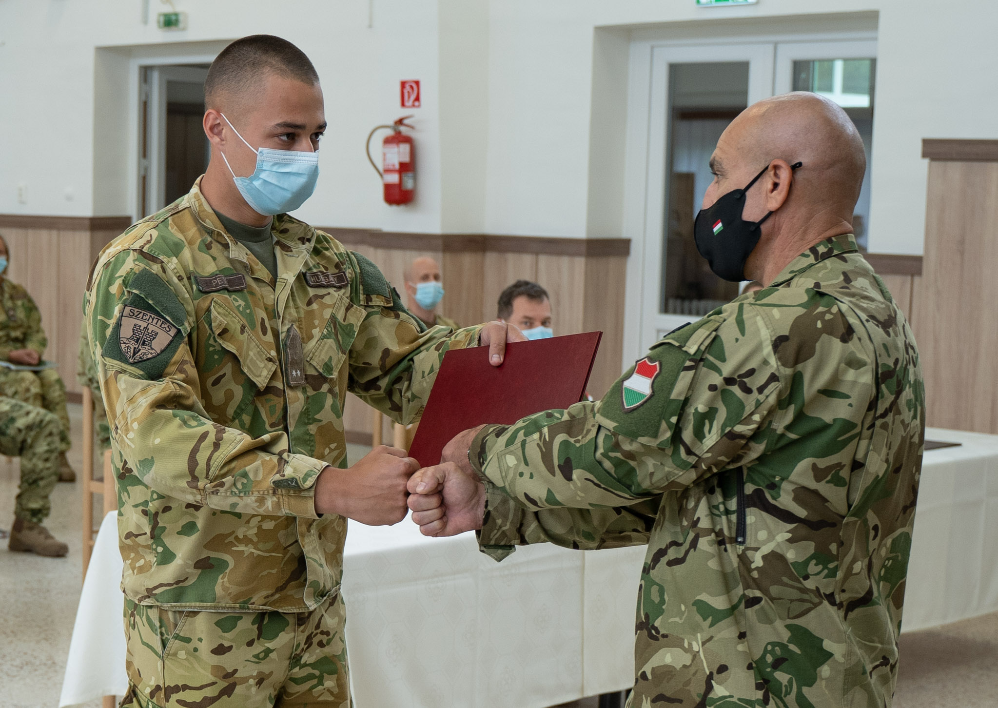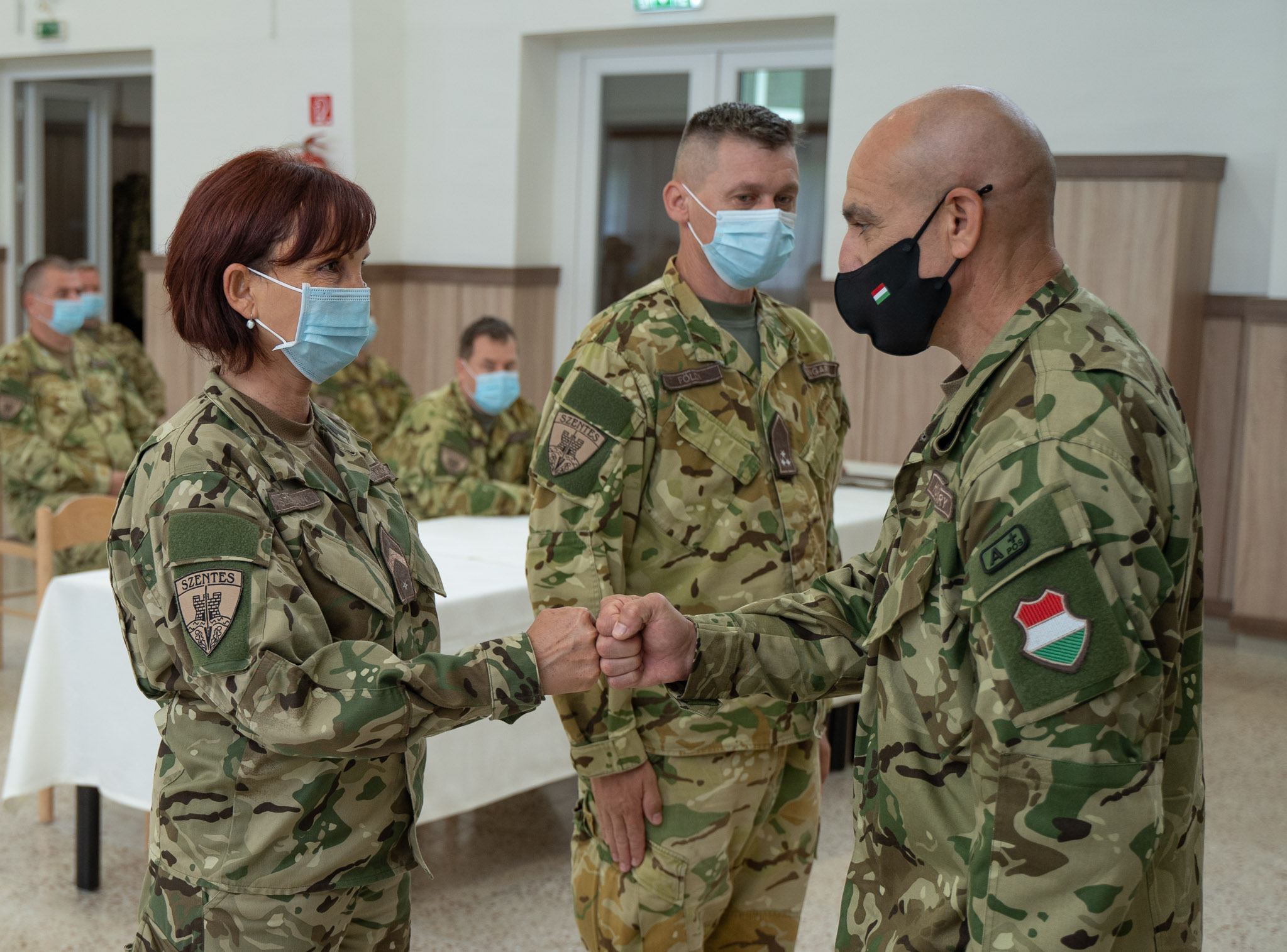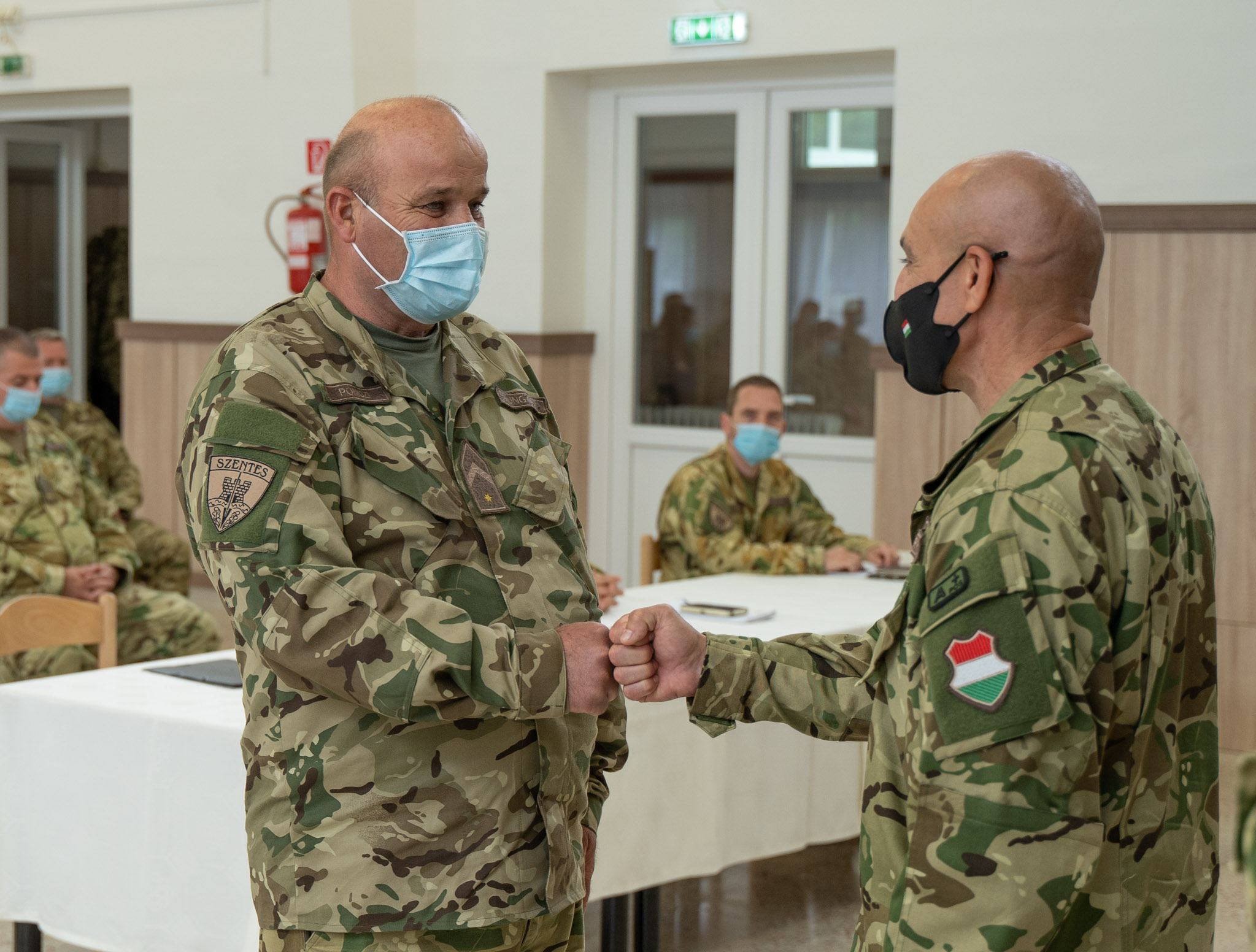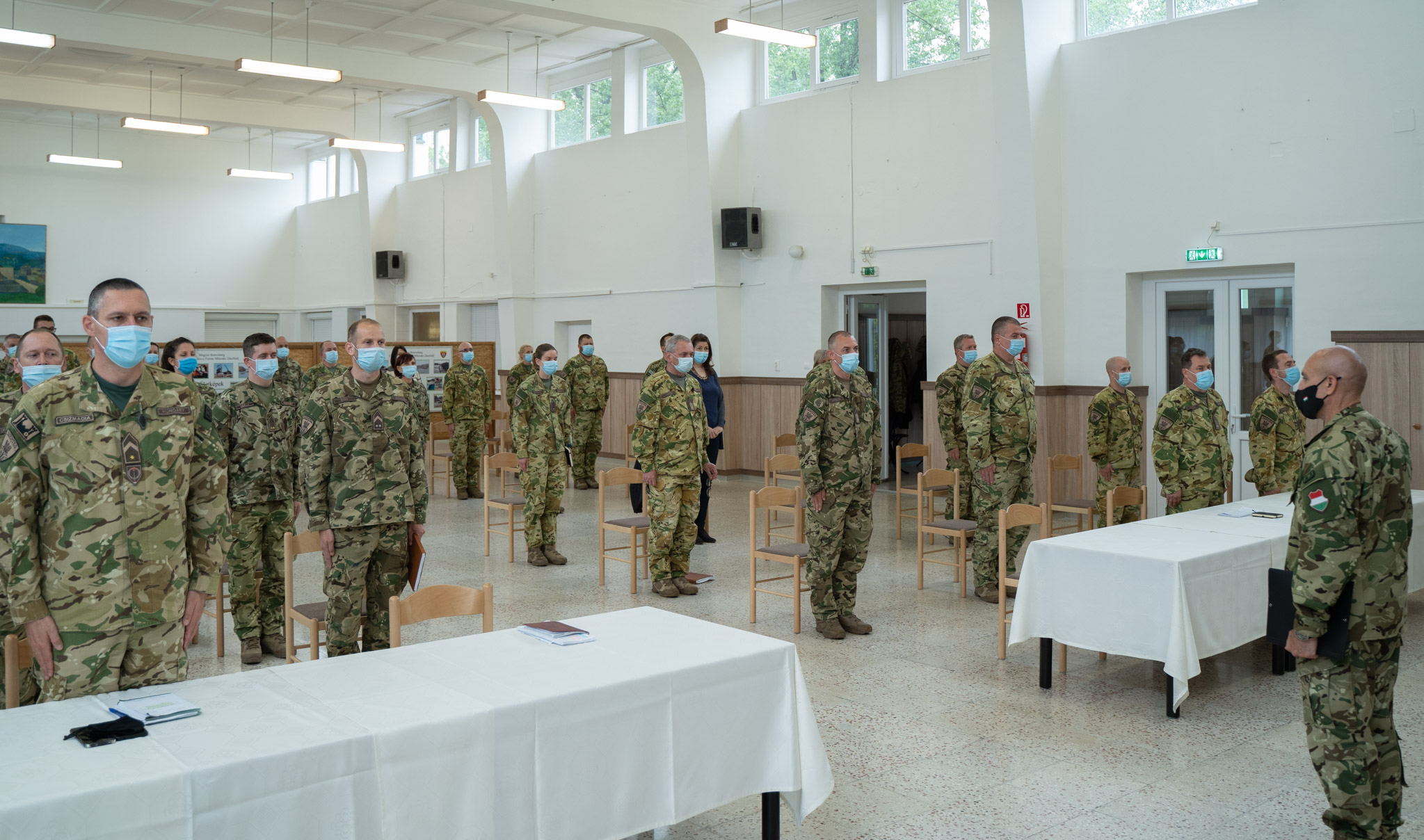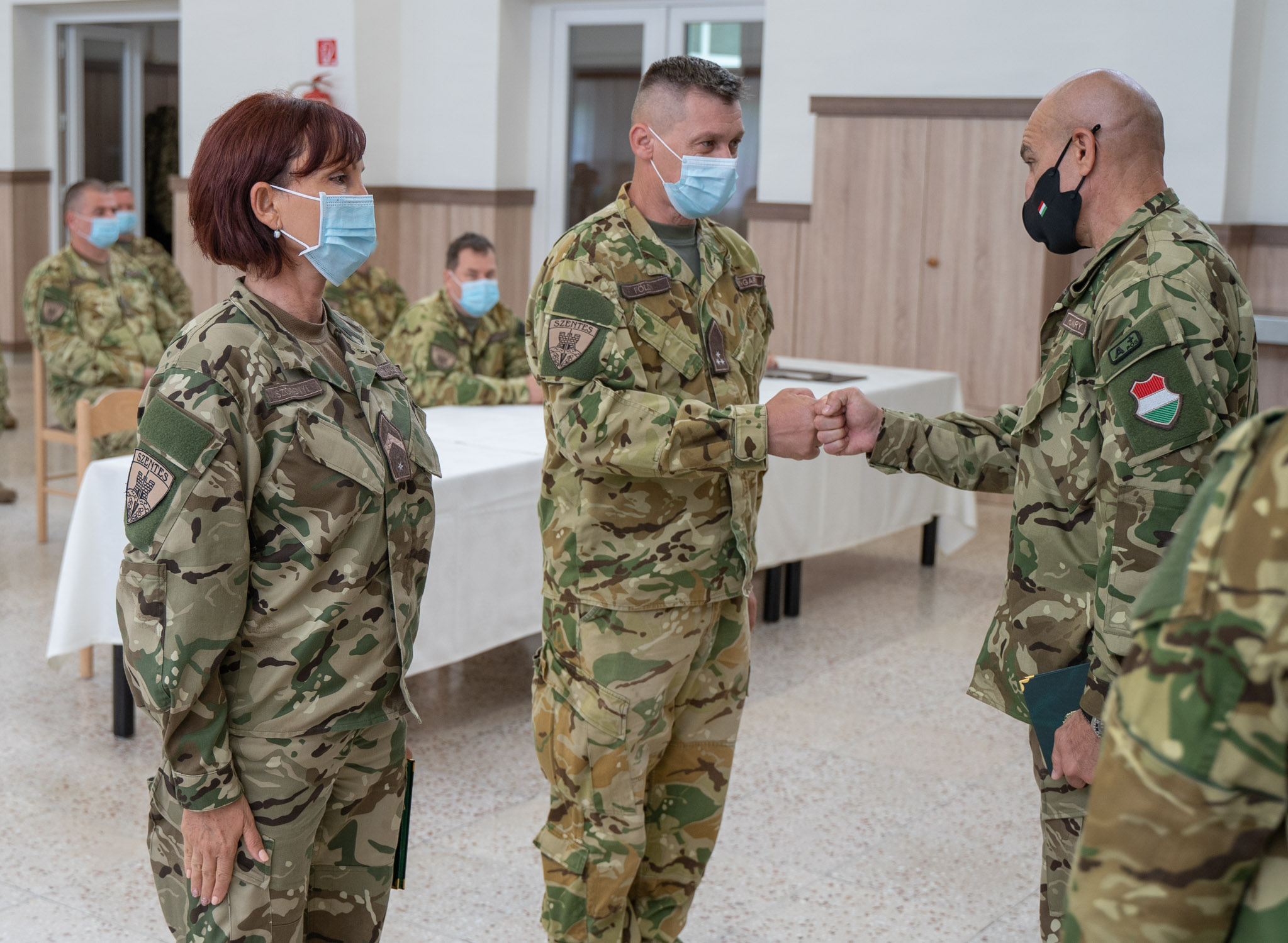 Antal László ezredes, a műszaki ezred parancsnoka a járványügyi korlátozások miatt szűk körben adott át elismeréseket honvédeink számára, akiknek gratulált és megköszönte áldozatos szolgálatteljesítésüket.