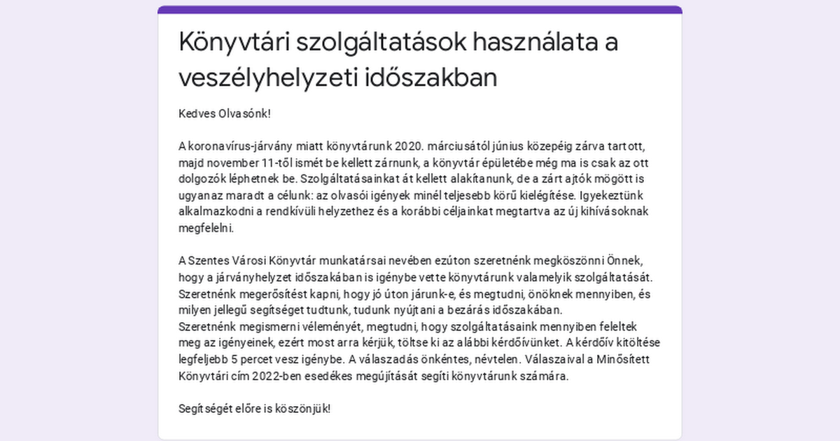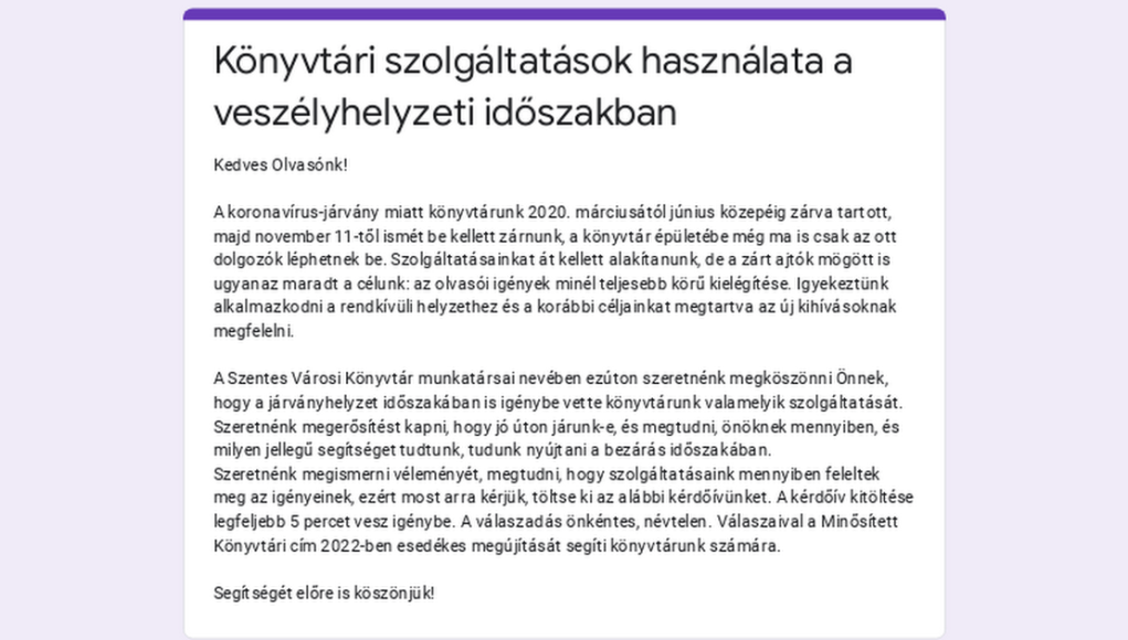 Könyvtári szolgáltatások használata a veszélyhelyzeti időszakban