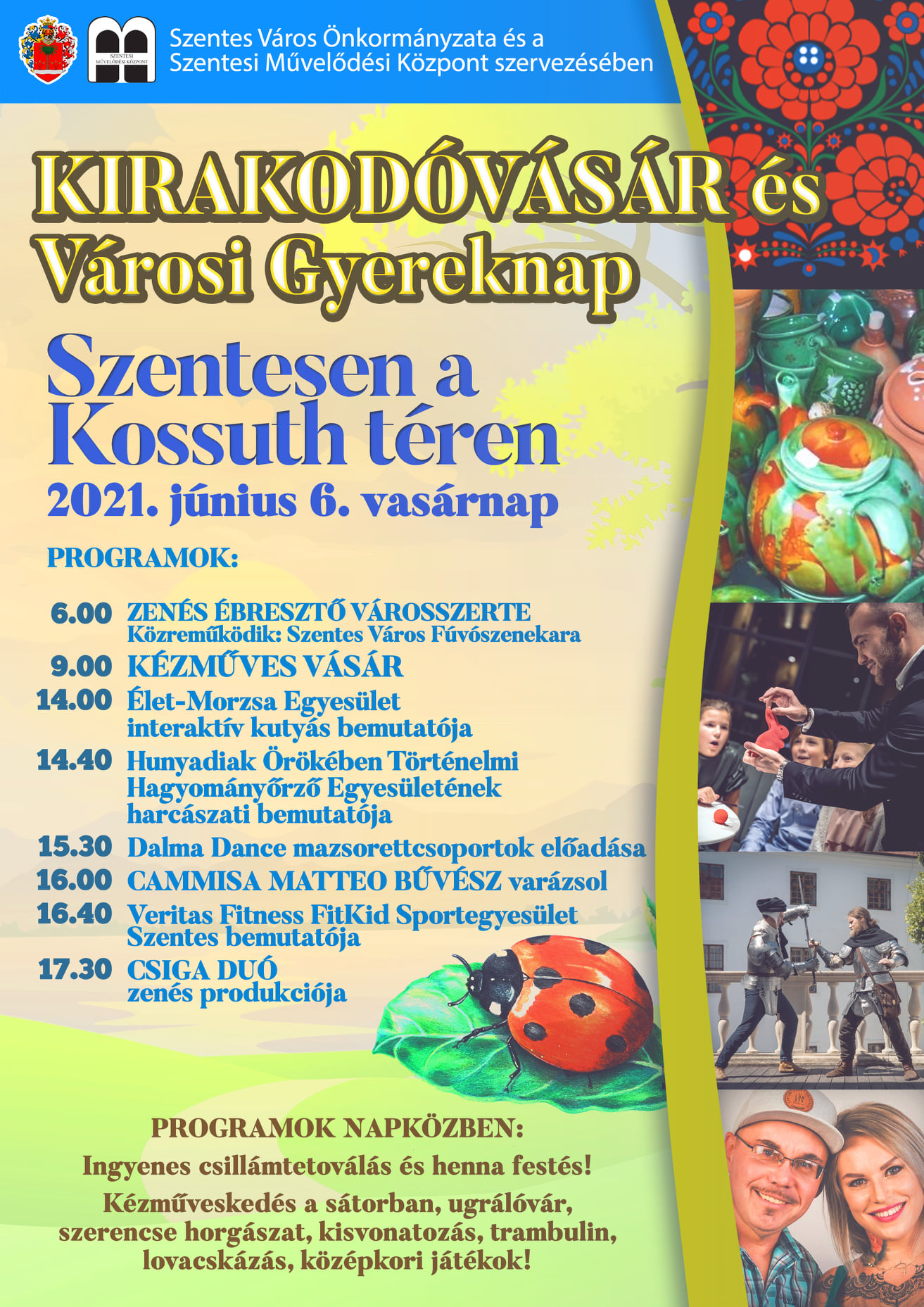 10 órától kézműveskedés, hennafestés, csillámtetoválás a kézműves sátorban 17 óráig