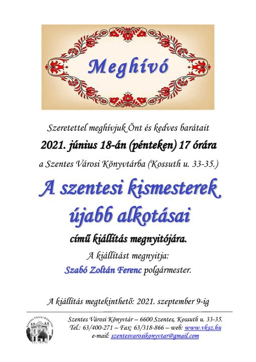 Kezdőlap Könyvtár Ma új kiállítás nyílik a könyvtárban….