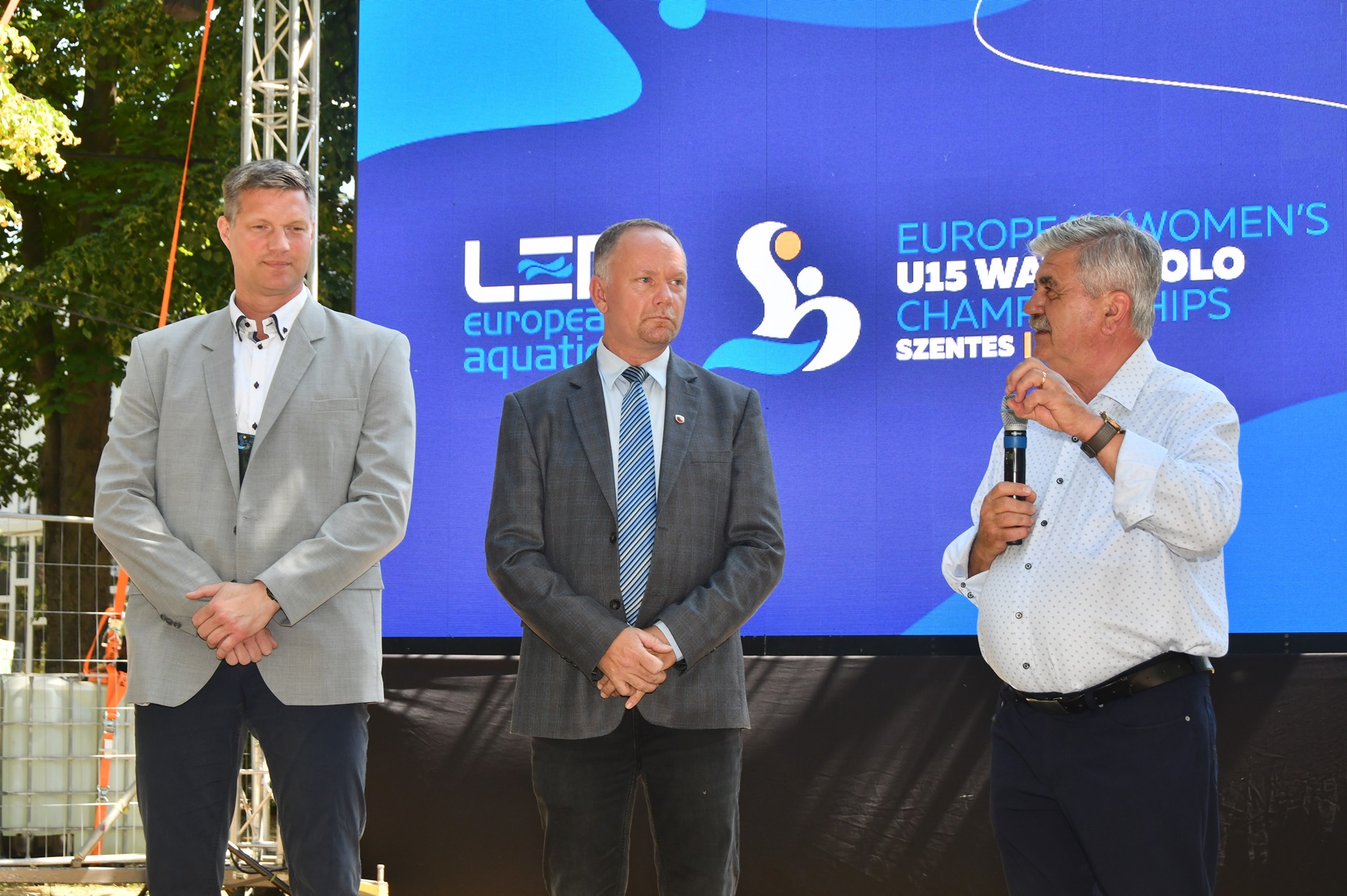 Ma délután útjára indult a labda Szentesen, a leány U15-ös Európa-bajnokságon. Ezt megelőzően a Szentesi Sport- és Üdülőközpontban a Sipos Edit Sétány mellett tartottunk sajtótájékoztatót, Farkas Sándor, a térség országgyűlési képviselője, Szabó Zoltán Ferenc, Szentes polgármestere, Vári Attila, a Magyar Vízilabda-szövetség elnöke, Magyar József, az MVLSZ szentesi elnökségi tagja, Biros Péter, utánpótlás szövetségi kapitány, valamint Kiss Patrícia játékos vett részt.