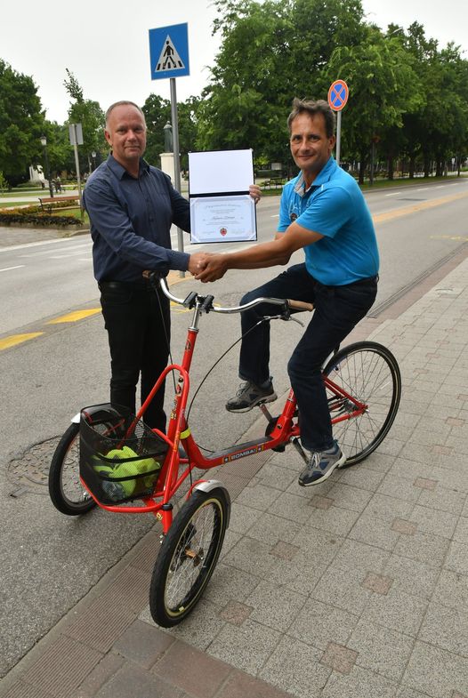 Bár az elismerő oklevélen előző évi dátum szerepel, most sikerült átadni azt Kalmár Zoltánnak, aki igen jellegzetes figurája városunknak. Ő az, aki háromkerekű kerékpárjával közlekedik, és ha közben szemetet lát az út szélén, mindet összeszedi.