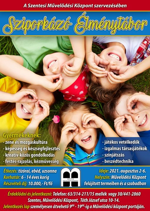 🟡🟠🔴Élményekkel teli tábort szervez a Szentesi Művelődési Központ jövő hét hétfőtől, 2021.08.02.-2021.08.06-ig!
