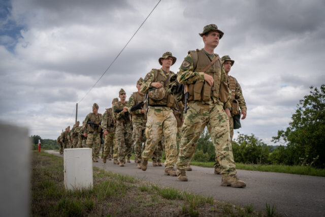 Az alapkiképzés végéhez közeledve a kiképzendők 20 kilométeres menetgyakorlaton vettek részt és bővítették általános harcászati ismereteiket is. Ellenőrző Áteresztő Pontot (EÁP) építettek ki illetve üzemeltettek, továbbá a robbantási foglalkozáson egy szerelt töltetet készítettek el, majd robbantottak fel. 📷 Janó Miklós őrm.