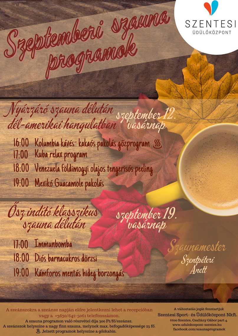 Rajzpályázat és szeptemberi szauna programok a Szentesi Sport- és Üdülőközpontban