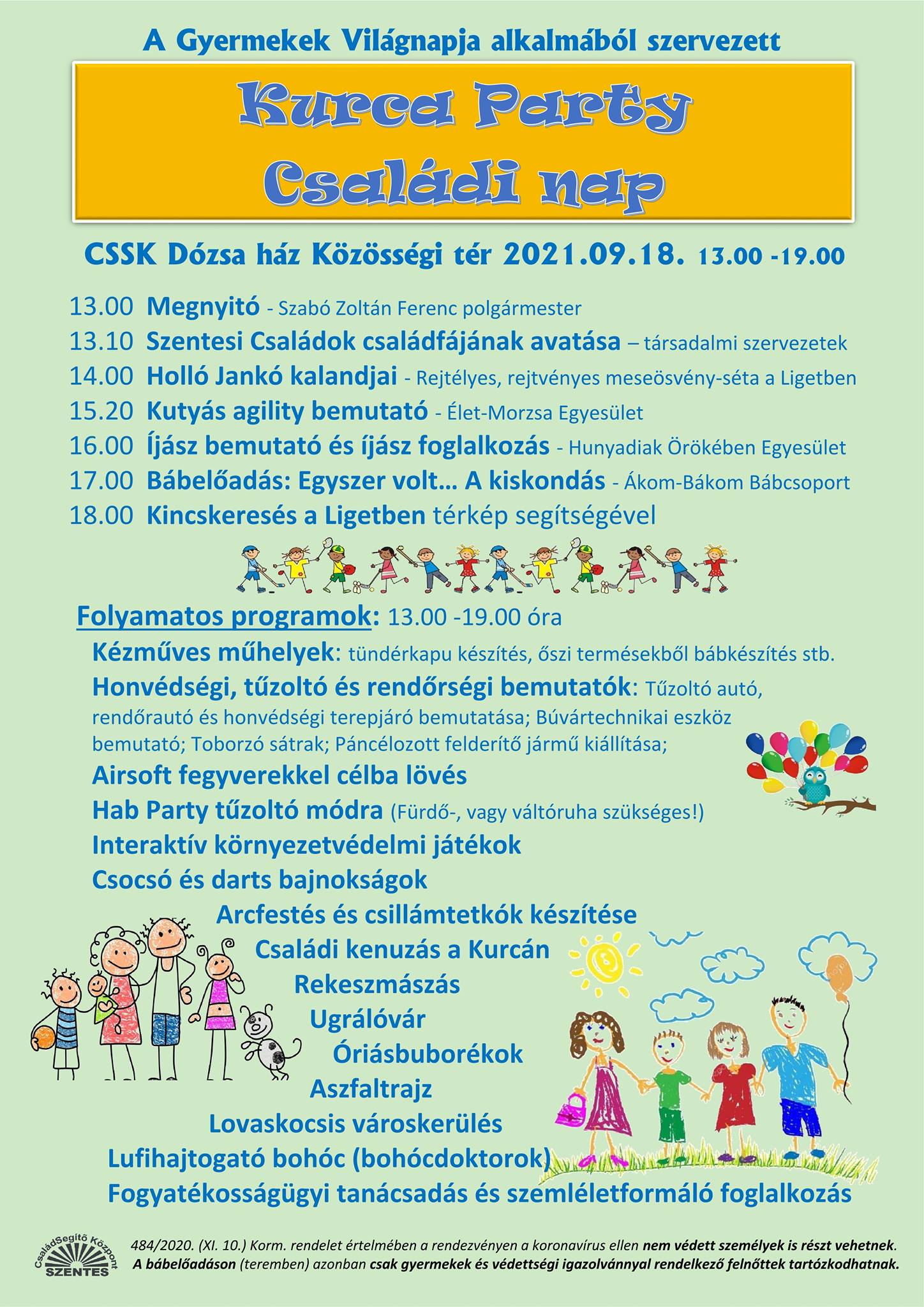 • az I. Kurca Party Családi Napot 2021.09.18-án, szombaton 13 és 18 óra között a Dózsa ház Közösségi terénél.