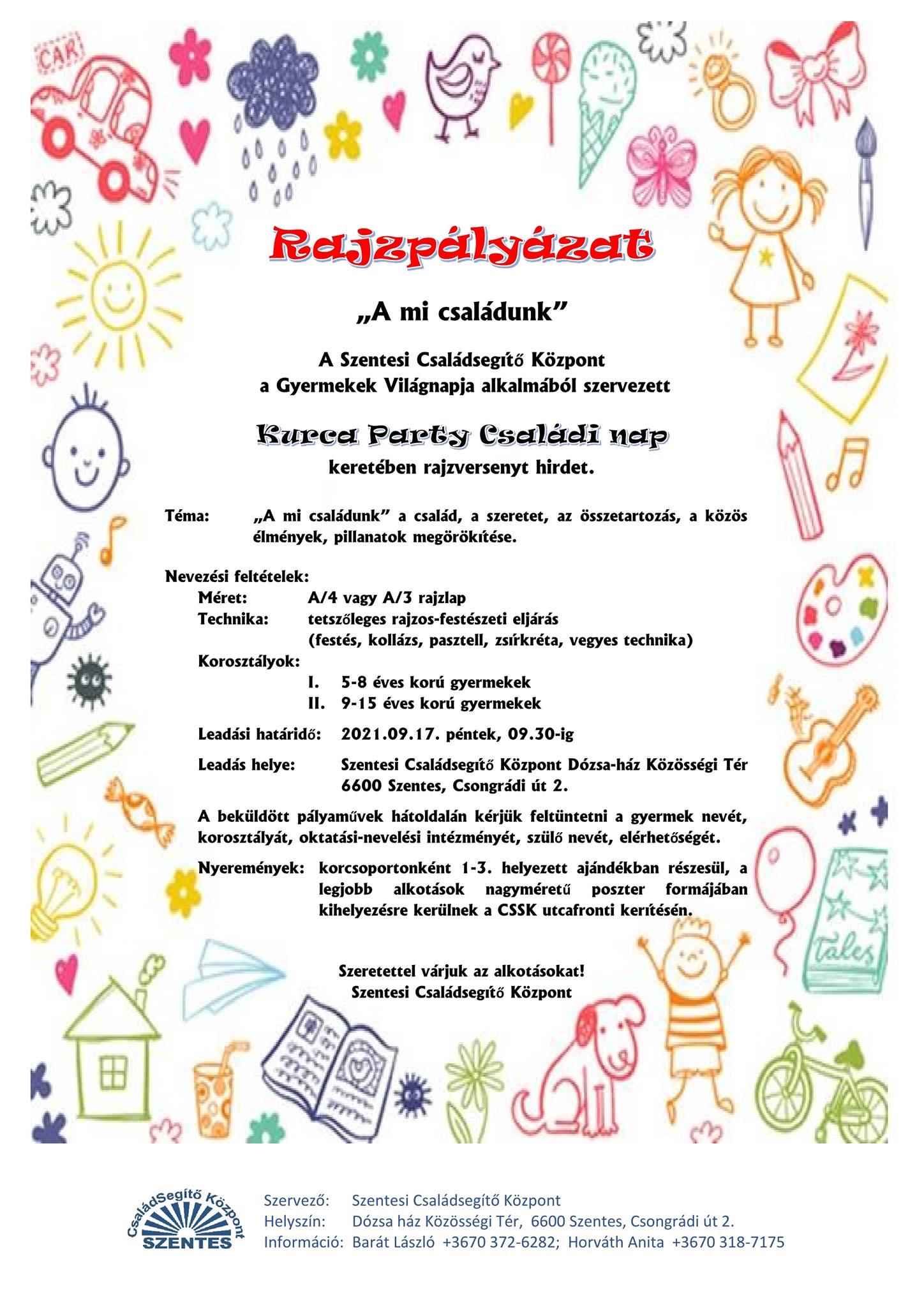 A programok keretében a Szentesi Családsegítő Központ rajzversenyt is hirdet „A mi családunk „ címmel. További részletek a plakátokon. Mindenkit szeretettel várnak a Szentesi Családsegítő Központ munkatársai!