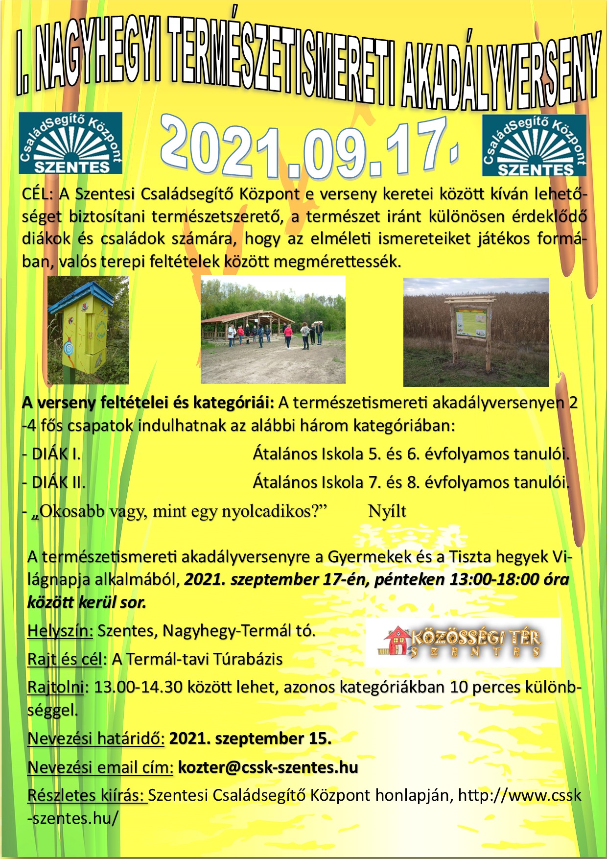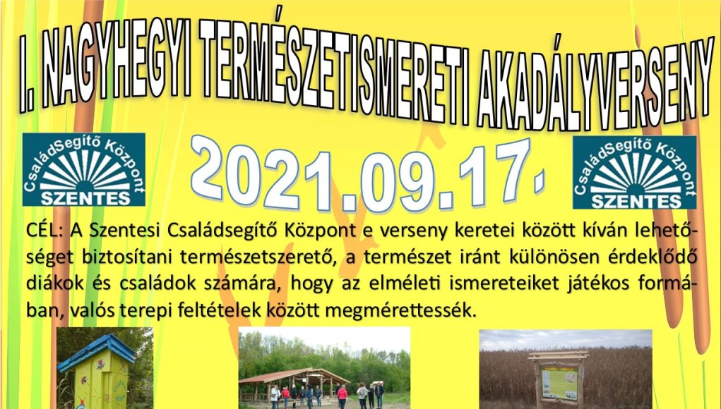 • az I. Nagyhegyi Természetismereti akadályversenyt 2021.09.17-én, pénteken 13 és 18 óra között a Nagyhegyi -Termál Tónál, valamint