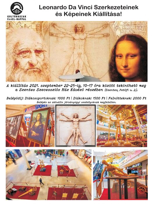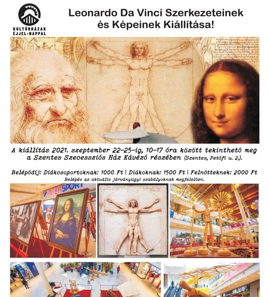 A Mona Lisáért nem szükséges a párizsi Louvre-t felkeresni, a világ leghíresebb portréjának reprodukcióját a Leonardo da Vinci: Művész-Feltaláló-Zseni című interaktív élménykiállítás hozza el Szentesre a polihisztor számos másik festményének és szerkezetének másolatával. A szeptember 22-től 25-ig Szentesen a Szecessziós Házban látható kiállítás a művészetek szerelmeseinek igazán kedvez, mert Leonardo 23 leghíresebb festményének másolatát együtt csodálhatjuk meg, értesültünk a szervezőktől. A további részleteket a Szentesi Élet 13. oldalán olvashatják.