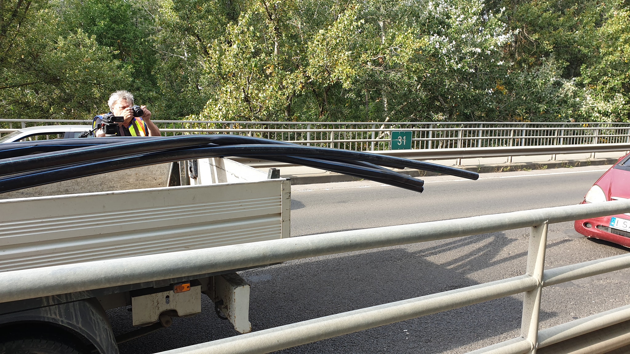 Műanyag csövek estek le egy platóról, folyik a helyszínelés a Tisza hídon Szentes és Csongrád között.