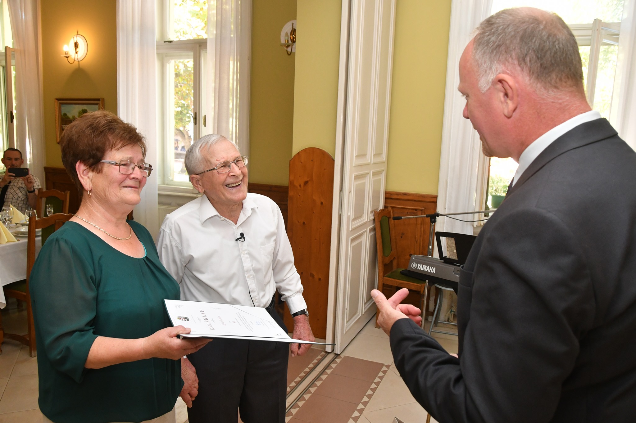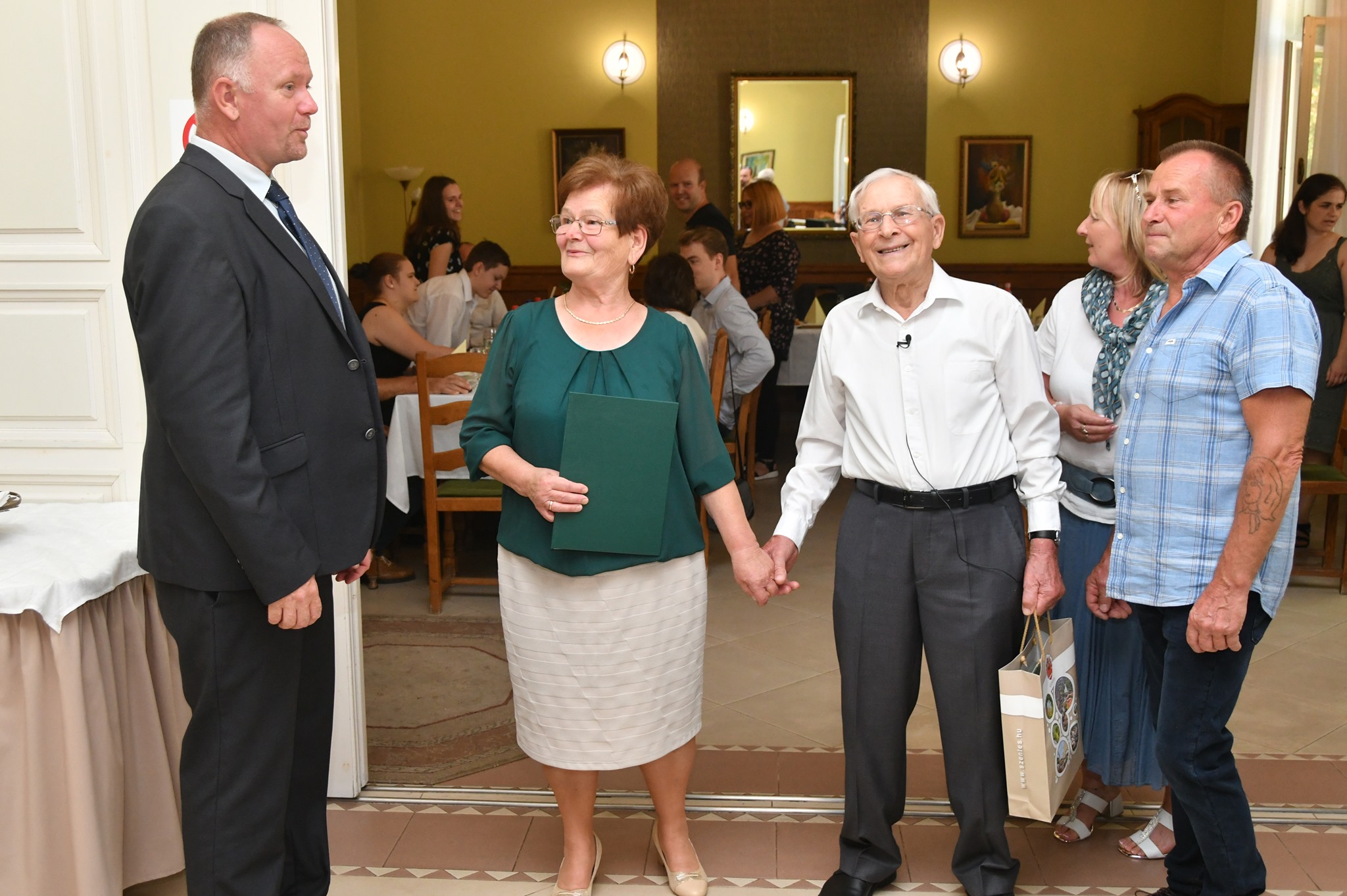 A 90 éves Agócs Istvánt köszöntötte családja körében Szabó Zoltán Ferenc polgármester szeptember 11-én a Páterház Étteremben. Pista bácsi kubikos volt, majd dolgozott az építőiparban, végül az erőtakarmánygyárban töltött 20 évet raktárosként, 60 évesen ment nyugdíjba, de azóta is tevékeny, örökmozgó és egészséges. Huszonöten ünnepelték a szépkorút, két gyermeke, négy unokája és négy dédunokája, valamint élettársa, Pannika családjával együtt. A köszöntő után még táncra is perdült, mert mint mondta, a keringő