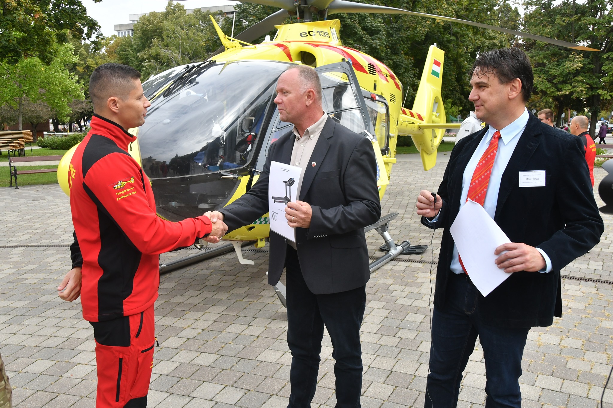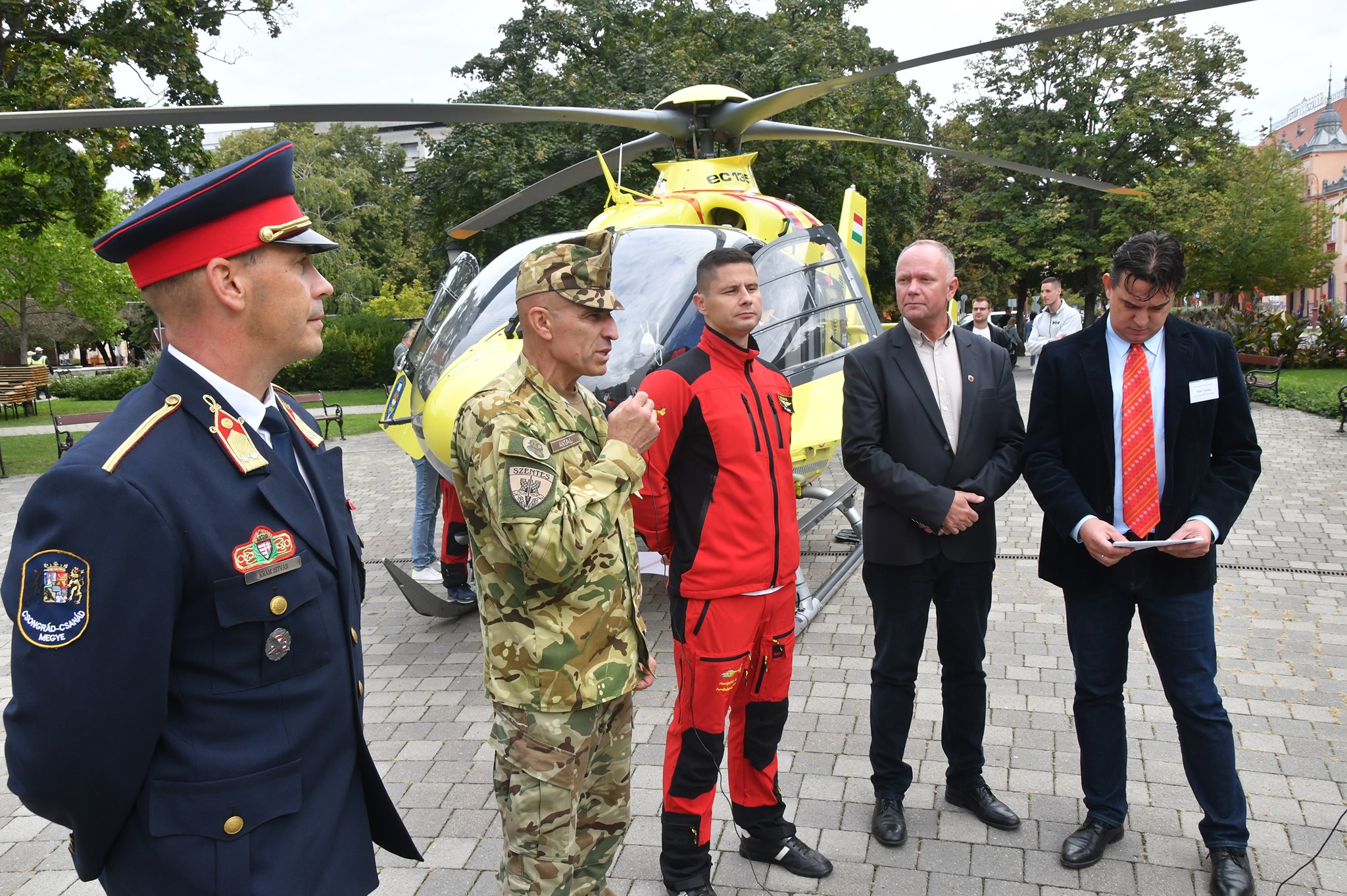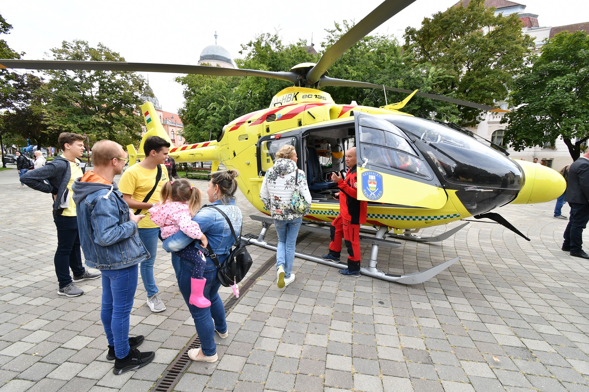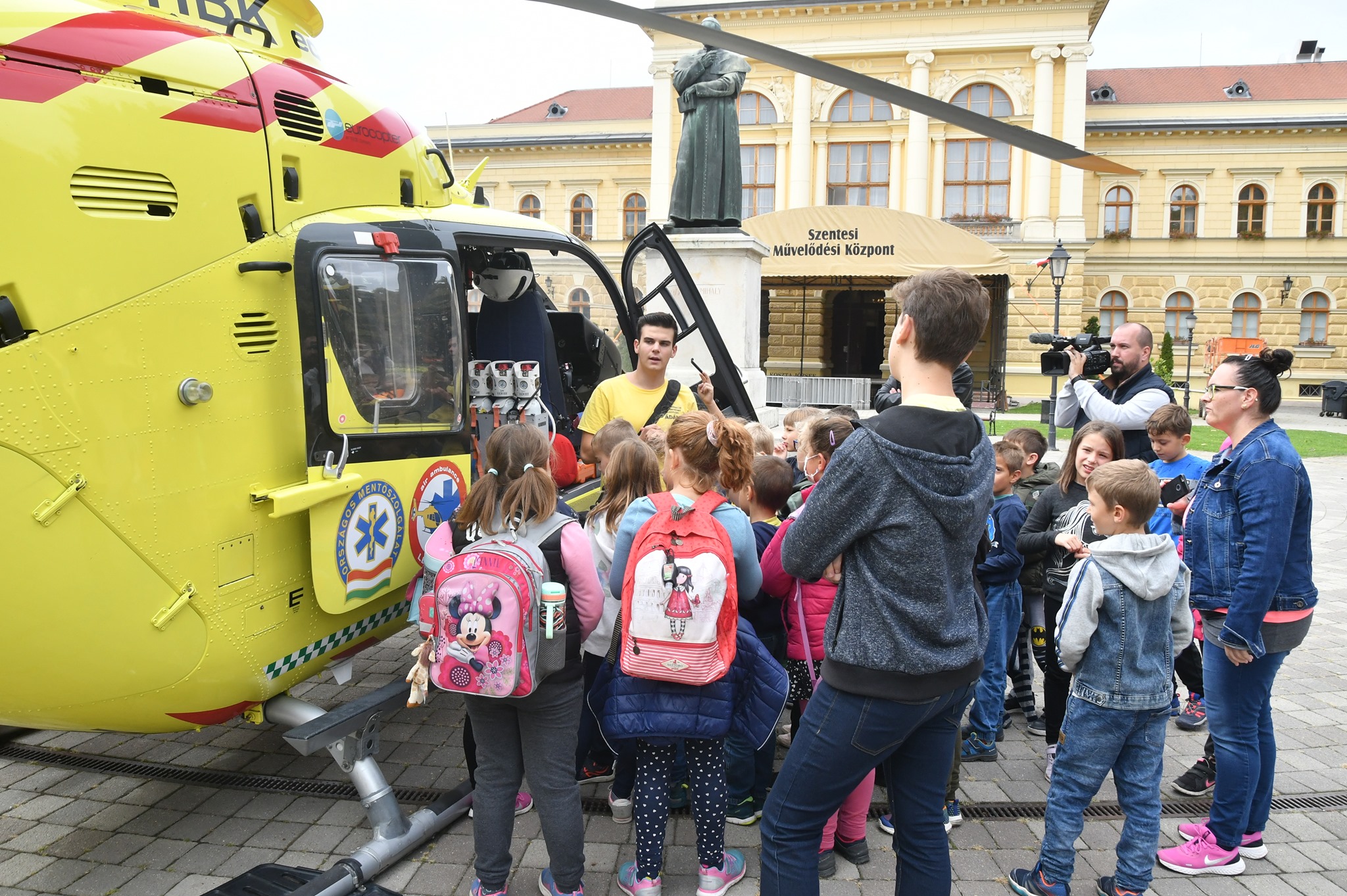 A szentesi légimentőbázis helikoptere szállt le a Kossuth téren szeptember 24-én délután. Rendhagyó közösségi eseményre érkezett, melyet a Magyarországi Légimentésért Alapítvány, a Magyar Légimentő Nonprofit Kft. és a Magyar Vöröskereszt közösen szervezett.