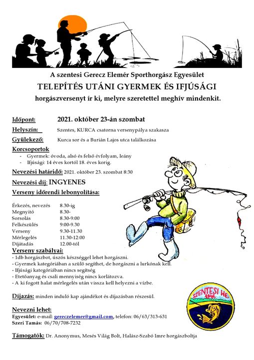 Szentesi Gerecz Elemér Sporthorgász Egyesület október 23-án, szombaton gyermek és ifjúsági horgászversenyt rendez a Kurca városi szakaszán.