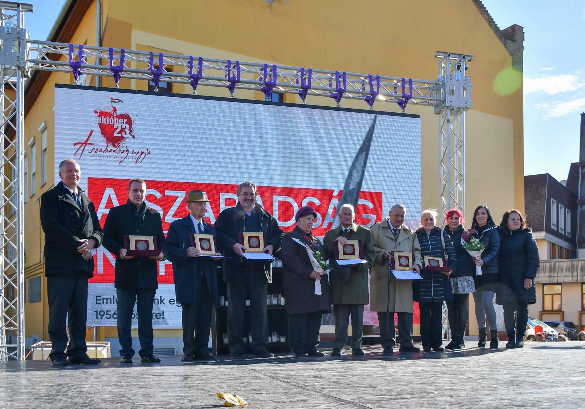 Az 1956-os forradalom és szabadságharc 65 esztendővel ezelőtti eseményeire emlékezett a város október 23-án, a Rózsa Gábor téren. Ünnepi beszédet mondott Szabó Zoltán Ferenc polgármester és Farkas Sándor miniszterhelyettes, országgyűlési képviselő. A csongrádi Alföld Néptáncegyüttes különleges és megható műsort adott, melyet az 1956, aki magyar velünk tart című rockopera dalaiból állítottak össze. Átadták a Szentes Városért Emlékérmeket, majd a résztvevők megkoszorúzták a Büszkeségpontot. Tudósításunkat a Szentesi Élet 3. oldalán olvashatják.